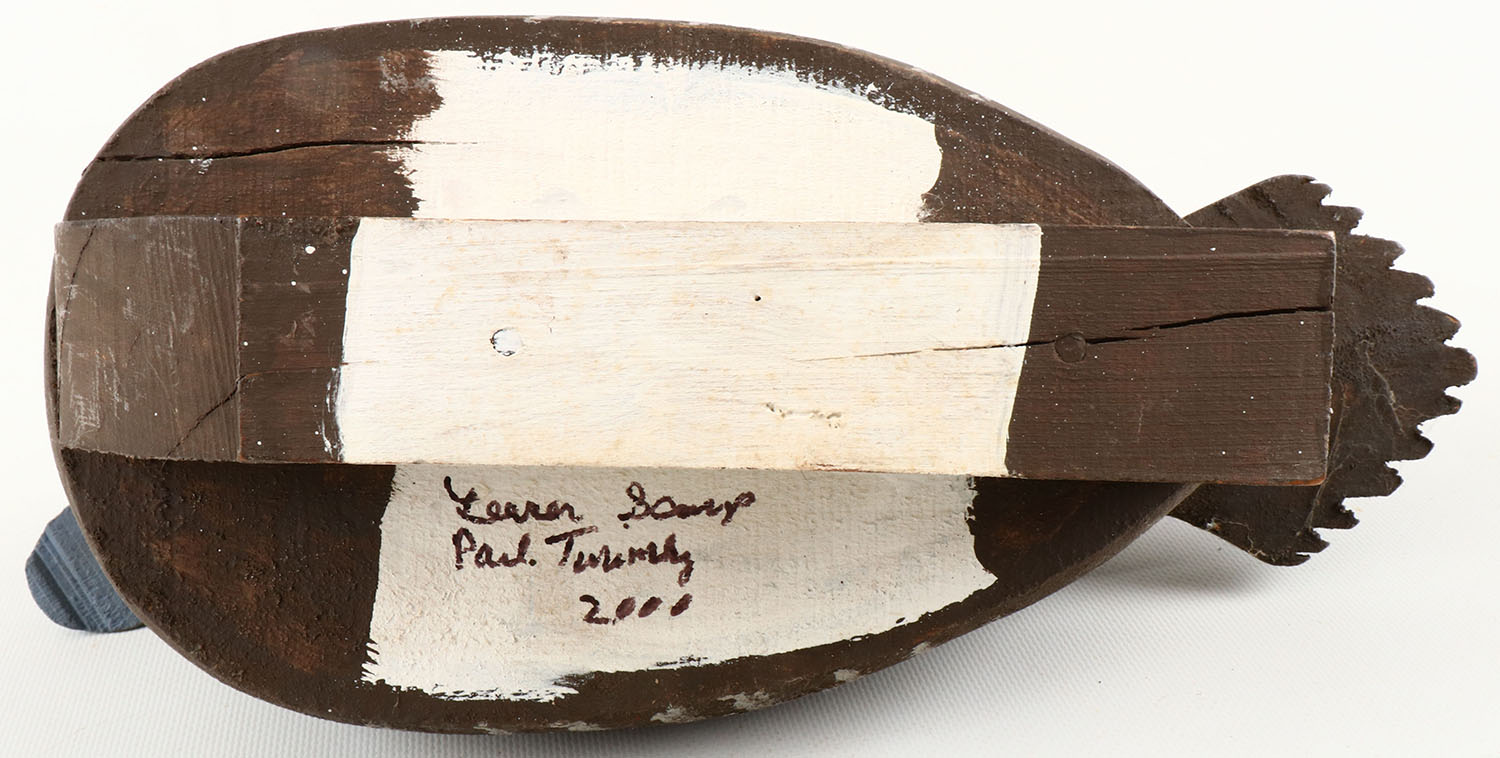 Bluebill Hen by Paul Turnisky (2000), glass eyes, structurally excellent, solid wood, excellent original paint. Grade: Excellent ++ - Value: 40 to 180