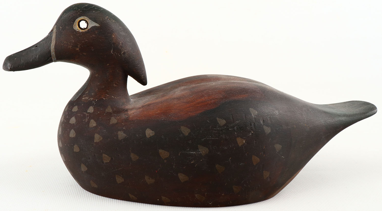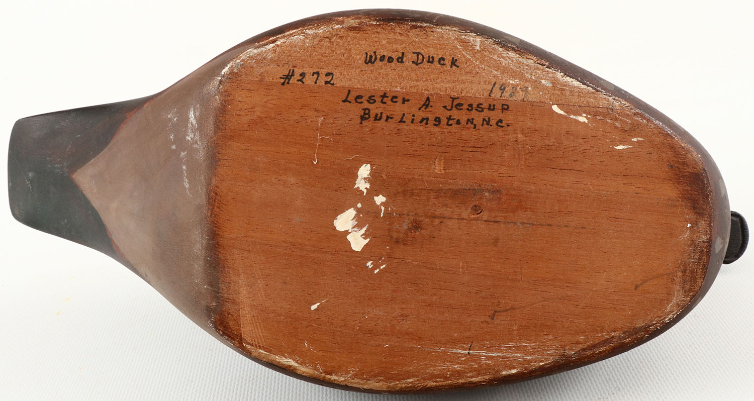 Woodduck Hen by Lester A. Jessup, Burlington, N.C. structurally excellent, solid wood, excellent original paint. Grade: Excellent ++ - Value: 40 to 150