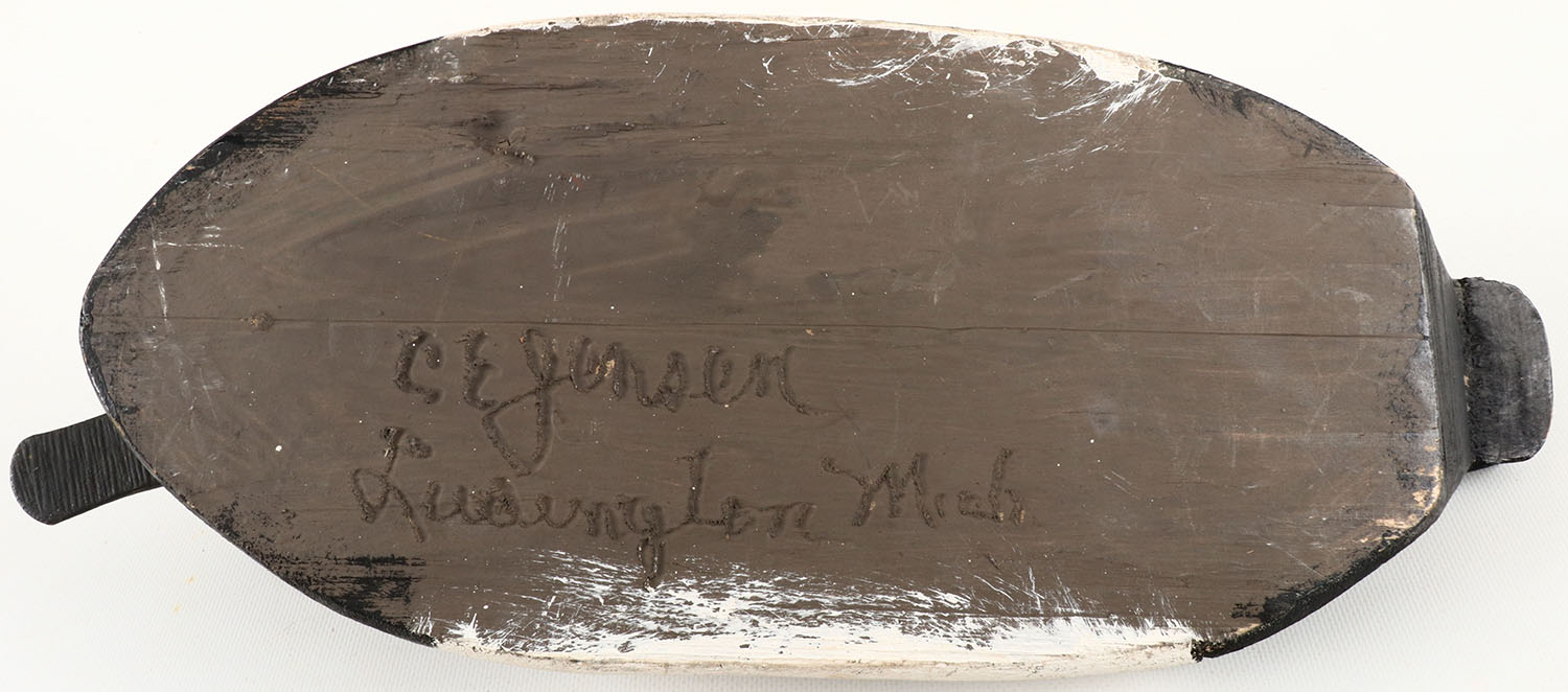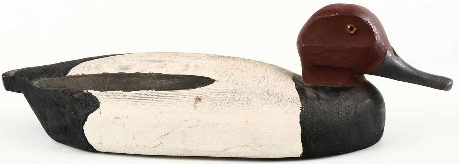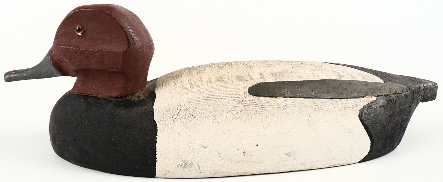 Redhead Drake by CE Jensen, Ludington Mich,, glass eyes, structurally excellent, solid wood, excellent original paint. Grade: Excellent ++ - Value: 40 to 150