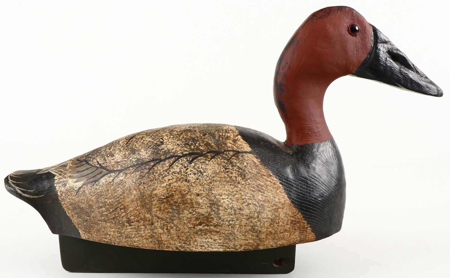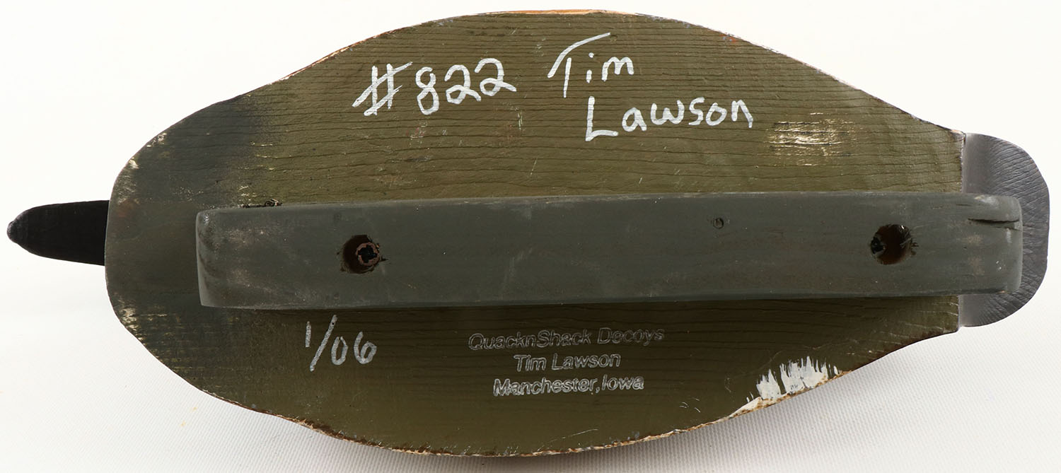 Canvasback Drake by Tim Lawson, QuacknShack Decoys, Manchester, Iowa , glass eyes, structurally excellent, solid wood, excellent original paint. Grade: MINT - Value: 40 to 150