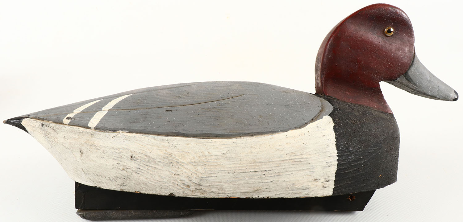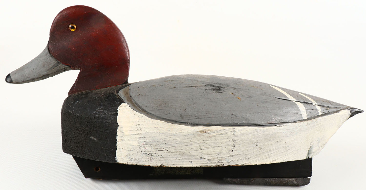 Redhead Drake by unknown, Ontario, glass eyes, structurally excellent, solid wood, excellent original paint, has branded HP on bottom. Grade: Excellent ++ - Value: 40 to 150
