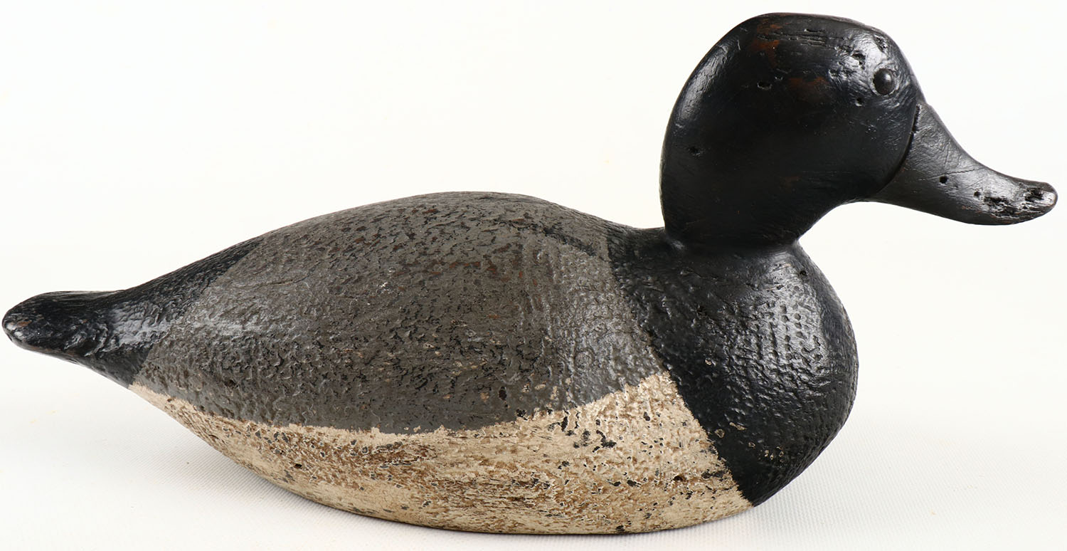 Bluebill Drake by unknown maker, tack eyes, structurally excellent, solid wood, excellent original paint. Grade: Excellent - Value: 20 to 100