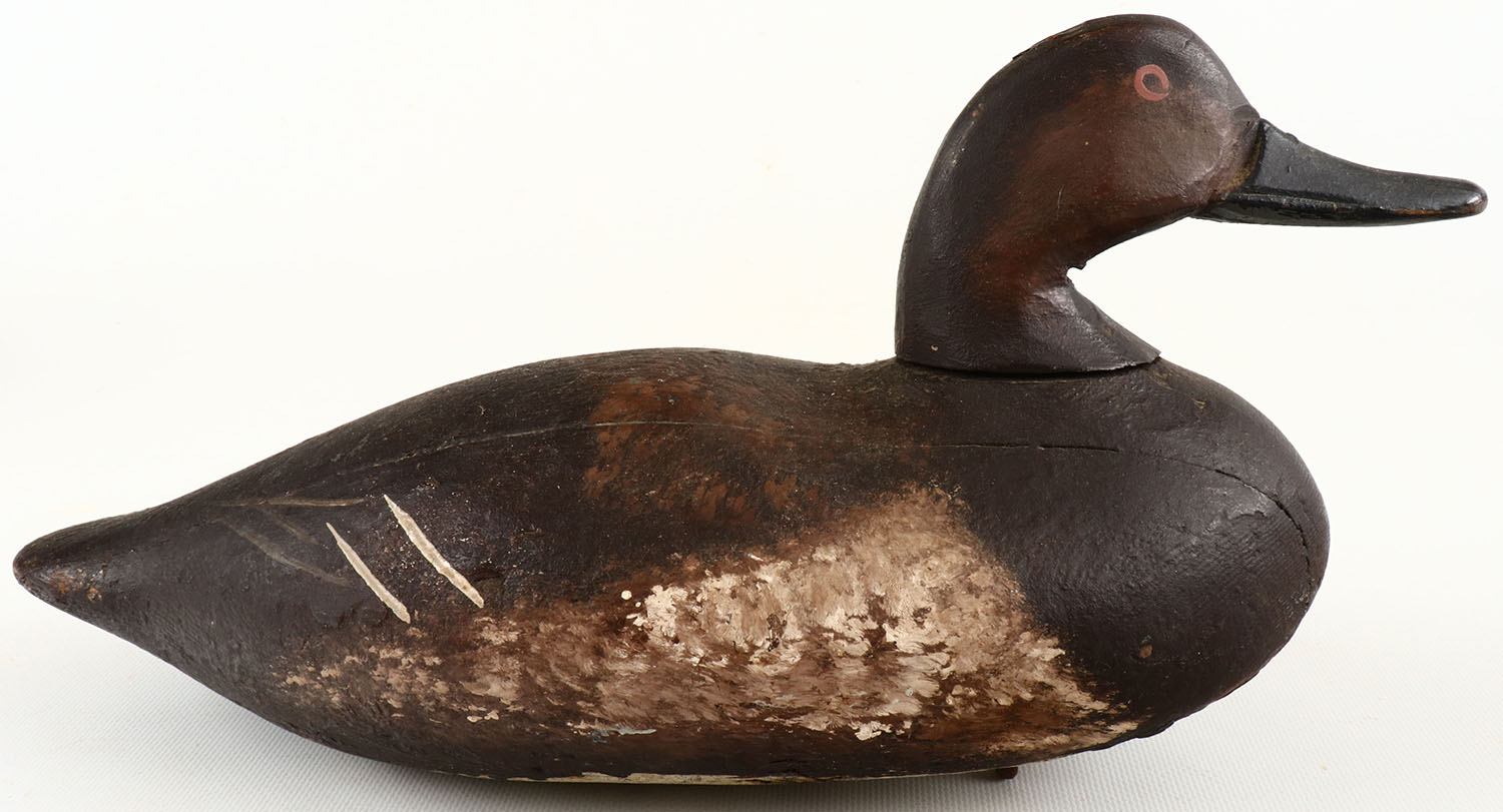 Canvasback Hen by unknown maker, painted eyes, structurally excellent, solid wood, repainted. Grade: Very Good + - Value: 20 to 100