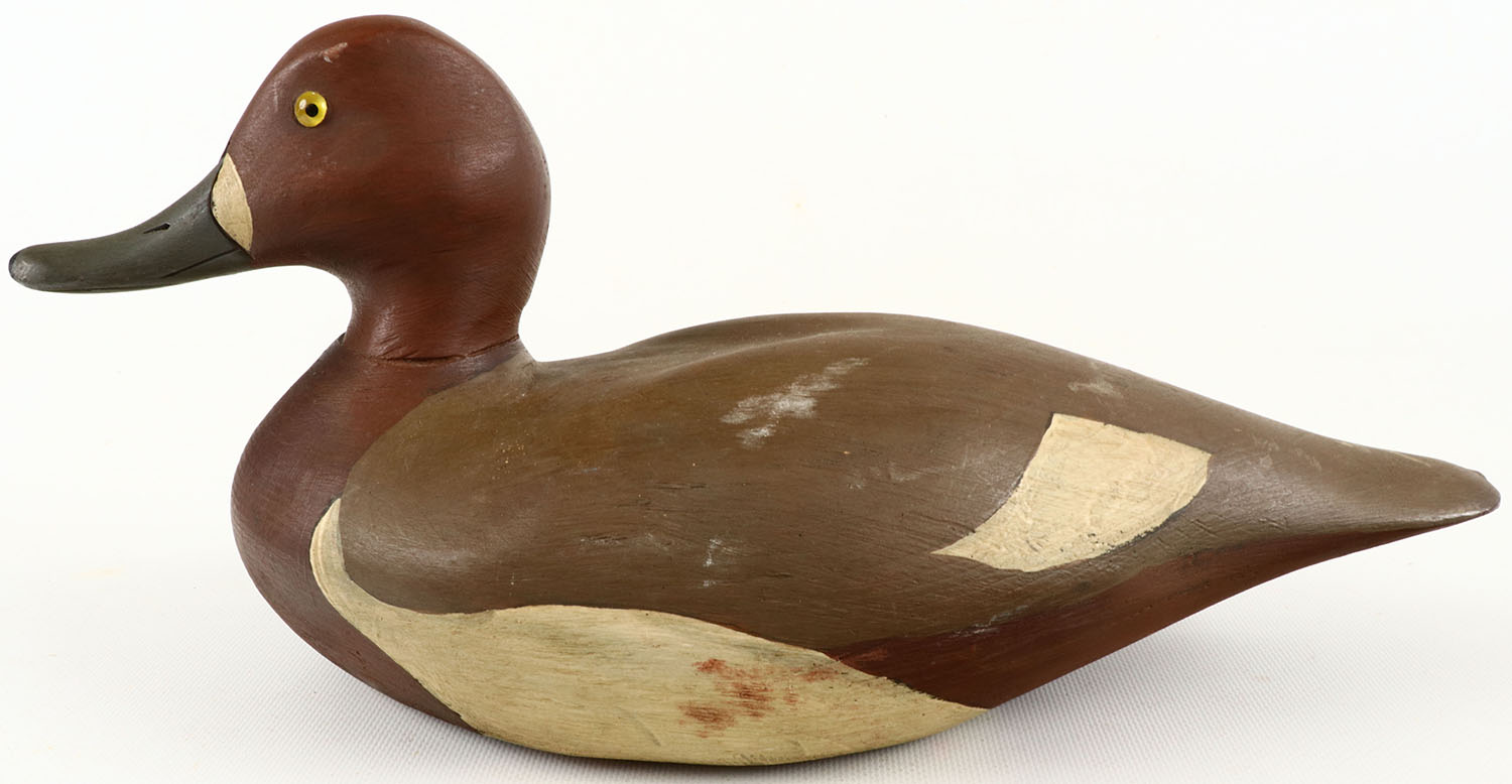 Bluebill Hen by Hingham Harbor Decoys glass eyes, structurally excellent, solid wood, excellent original paint. Grade: Excellent - Value: 20 to 100
