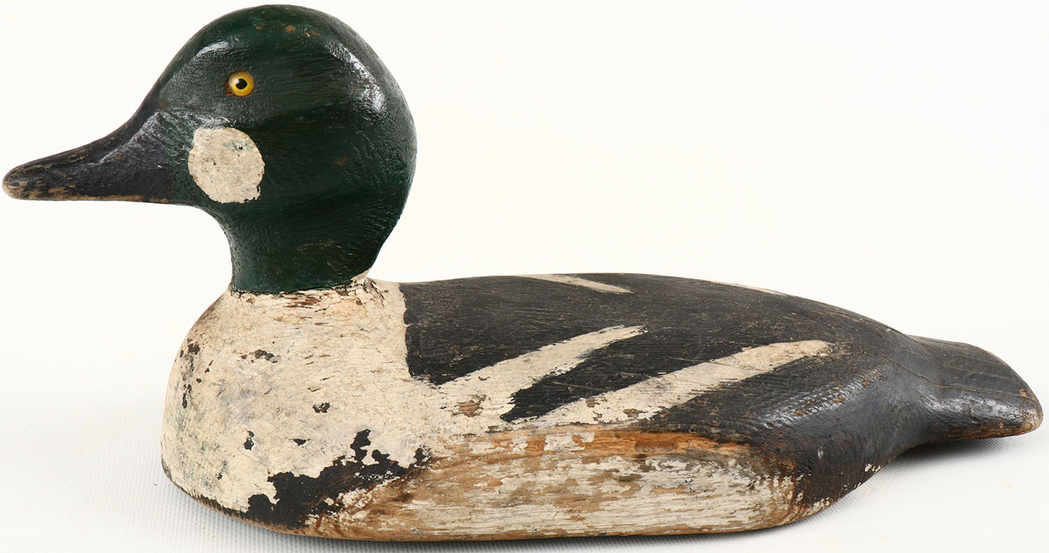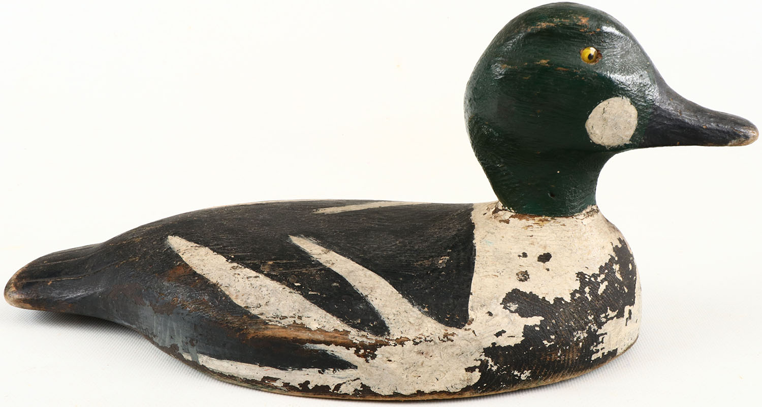 Goldeneye Drake by Jessie Baker, Trenton, Ont, glass eyes, structurally excellent, solid wood, paint has wear, excellent original paint with typical wear. Grade: Very Good ++ - Value: 20 to 100