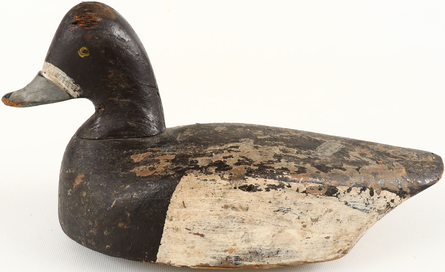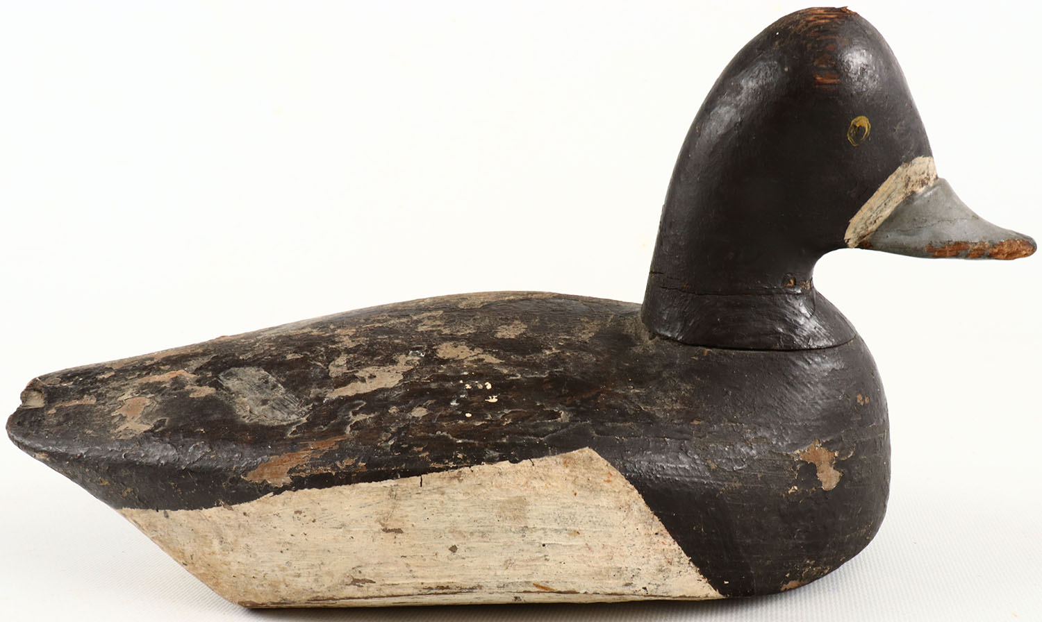 Bluebill Hen by unknown maker, painted eyes, structurally excellent, solid wood, excellent original paint with typical wear. Grade: Very Good ++ - Value: 20 to 100