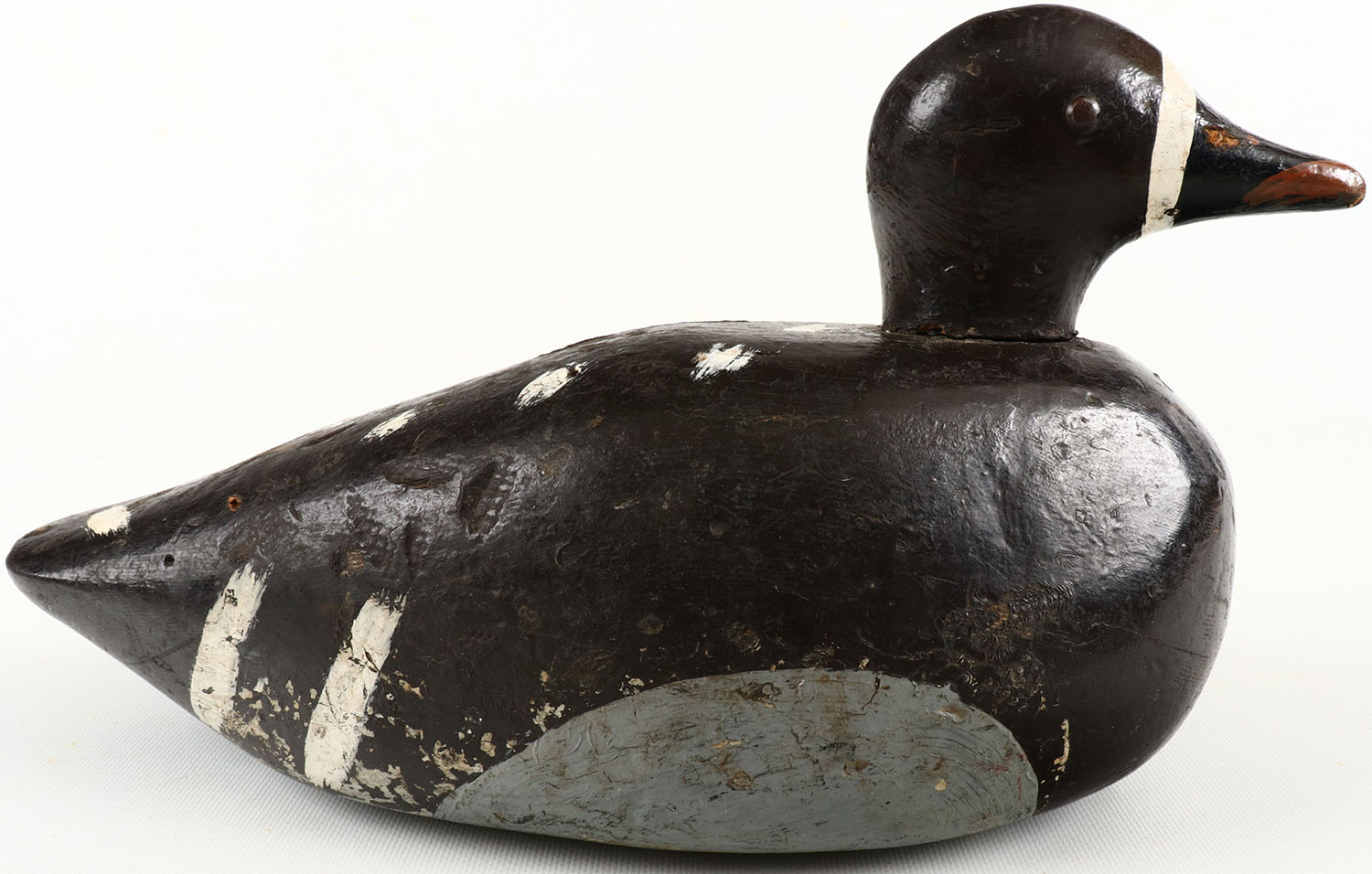 Ring-neck Hen by unknown maker, tack eyes, structurally excellent, solid wood, excellent original paint with typical wear. Grade: Very Good ++ - Value: 20 to 100