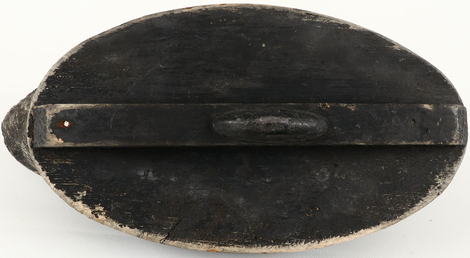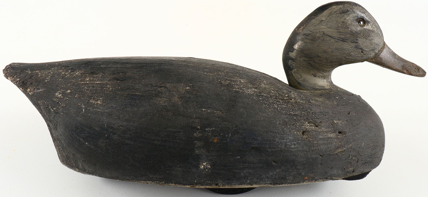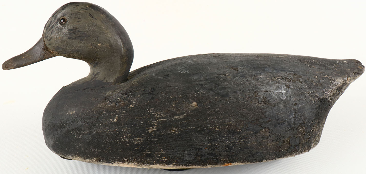 Black Duck by unknown maker, glass eyes, structurally excellent, solid wood, repainted. Grade: Very Good ++ - Value: 20 to 100