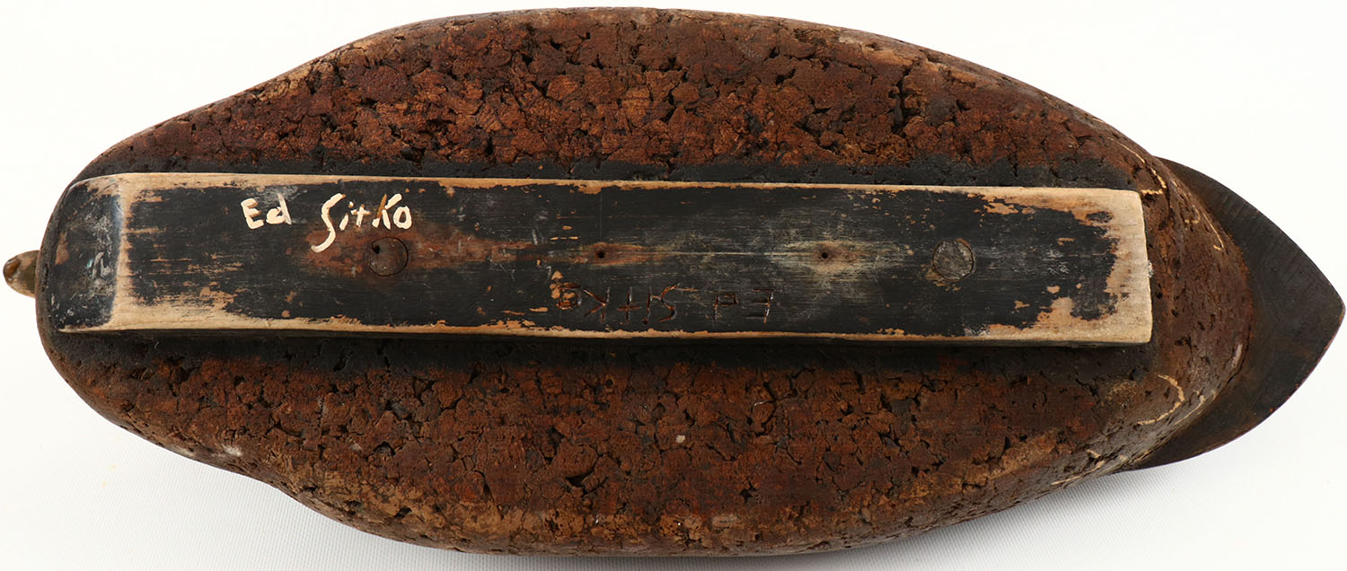 Blackduck by Ed Sitko, glass eyes, structurally excellent, solid cork with feather detail, original paint. Grade: Excellent - Value: 40 to 150