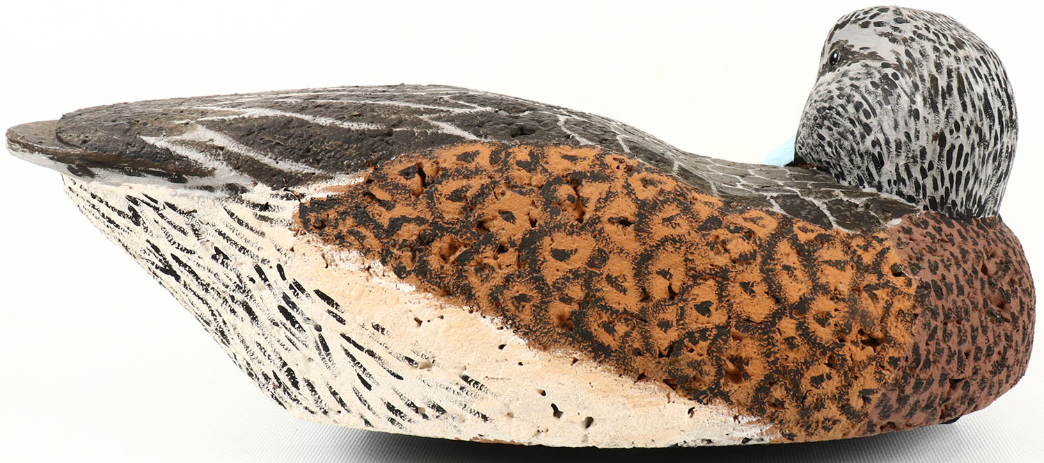 Widgeon Hen by Trobwater Decoys ? signed on bottom, glass eyes, structurally excellent, solid cork, excellent original paint. Grade: Excellent ++ - Value: 40 to 150