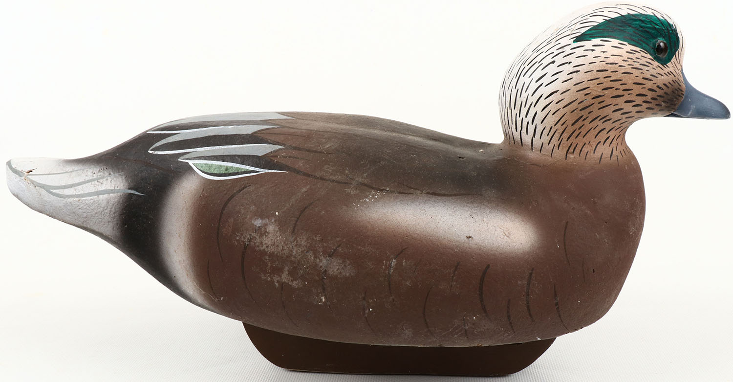 Widgeon Drake by Michael & Susan Veasey, glass eyes, structurally excellent, solid wood, excellent original paint. Grade: Excellent + - Value: 50 to 150
