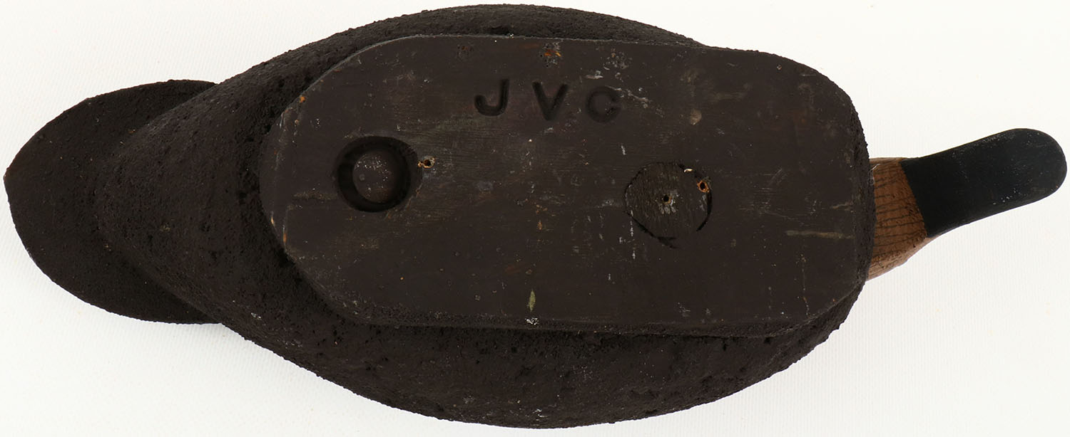 Green-wing Teal Hen, glass eyes, solid cork body, excellent original paint, has branded JVC on bottom. Grade: Excellent - Value: 10 to 100