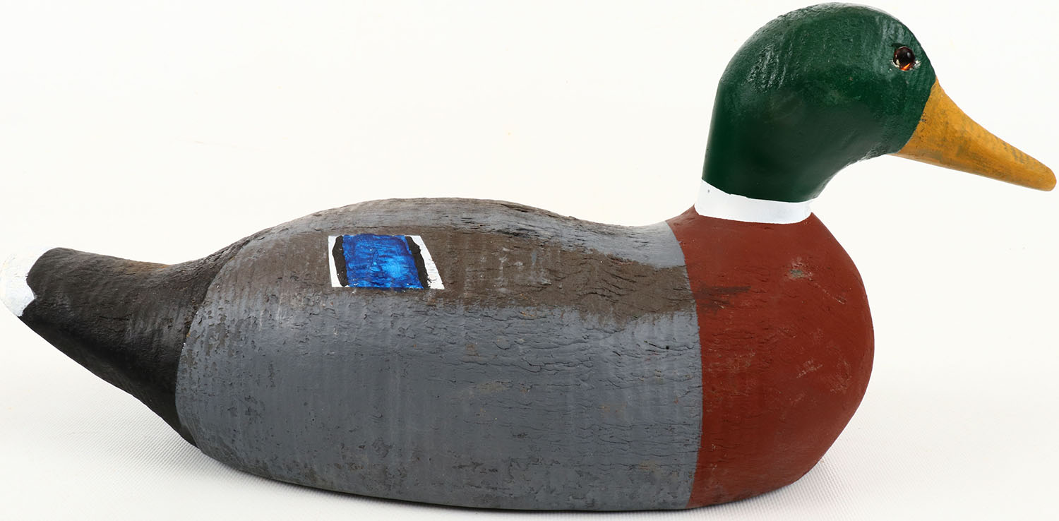 Mallard Drake by unknown maker, glass eyes, structurally excellent, solid wood, has hairline age cracks, excellent original paint. Grade: Very Good ++ - Value: 10 to 100