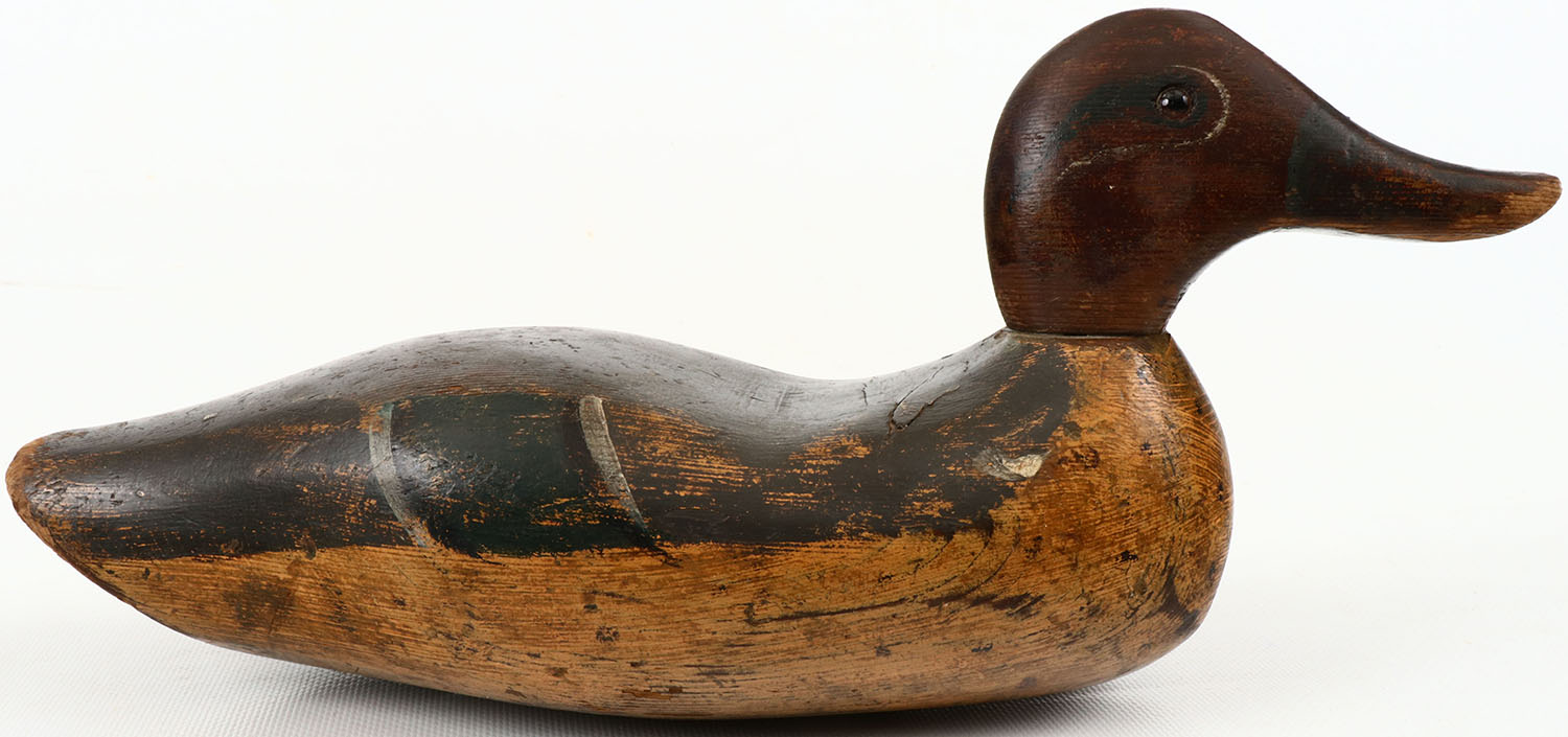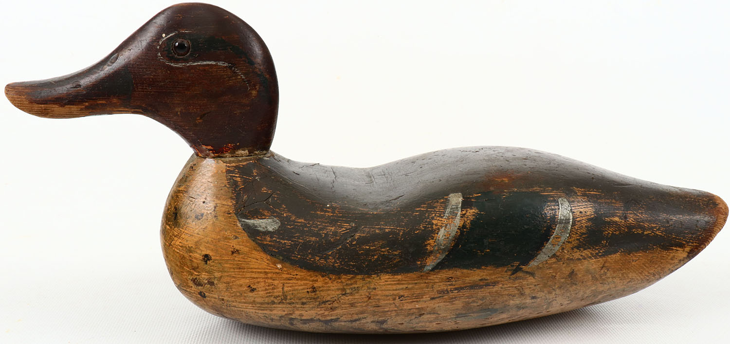 Green-wing Teal Drake appears to be by Stillman Manufacturing Com, Tacoma, WA, glass eyes, structurally excellent, solid wood, excellent original paint shows wear. Grade: Very Good ++ - Value: 50 to 150