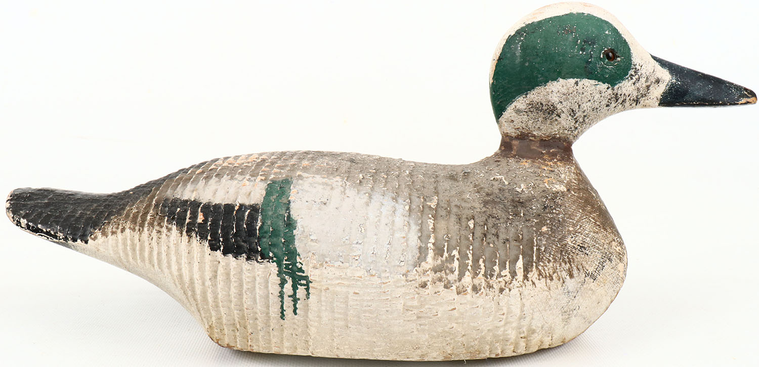 Wigeon Drake by Wilber Brothers, Sacramento, glass eyes, structurally excellent, solid wood, original paint. Grade: Excellent - Value: 100 to 250