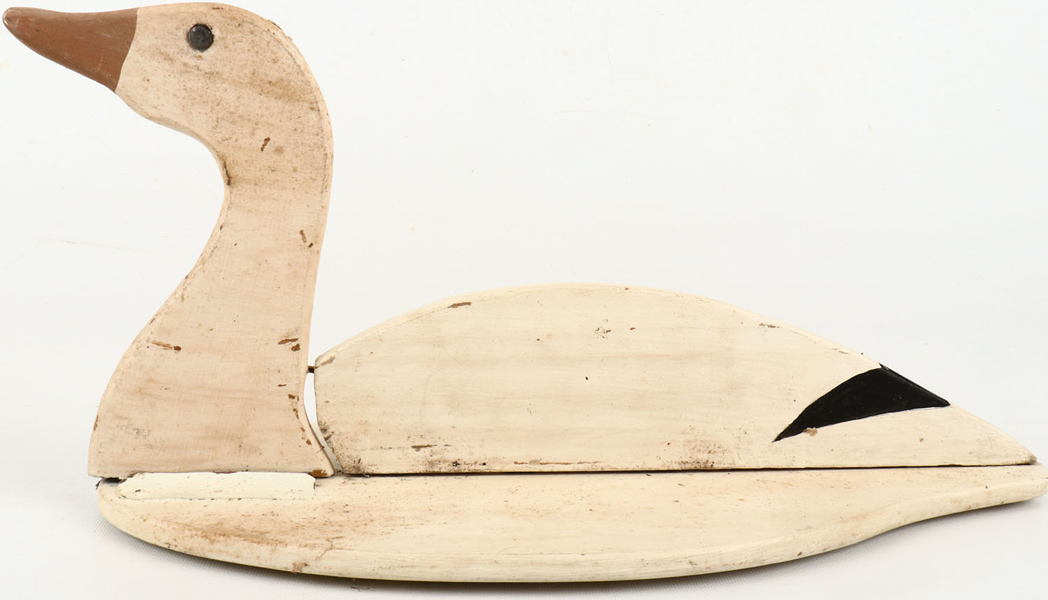 Snow Goose by unknown maker, WA, collapsible decoy, tack eyes, excellent original paint with typical wear. Grade: Excellent - Value: 30 to 60