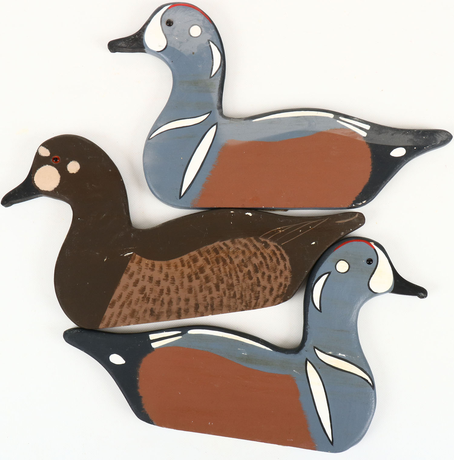 Lot of 3 Harley Quinn Silhouette by Larry Rucker, Maple Valley WA., originally mounted on 3-way spreader, glass eyes, structurally excellent, solid wood, excellent original paint with typical wear. Grade: Excellent - Value: 30 to 60