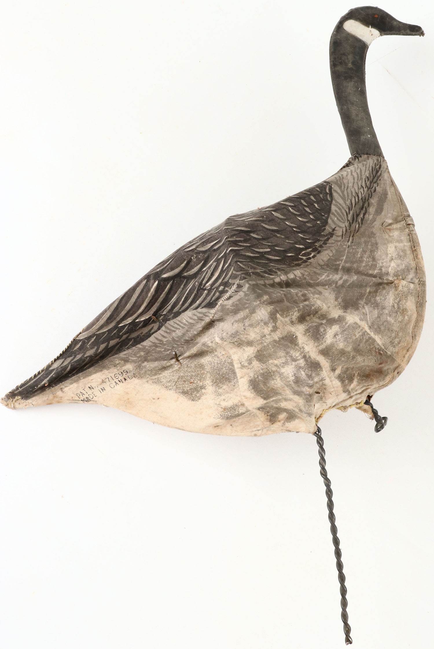 Canada Goose by unknown maker, made In Canada, painted eyes, cloth over wire, feel decoy. Grade: Very Good ++ - Value: 30 to 60