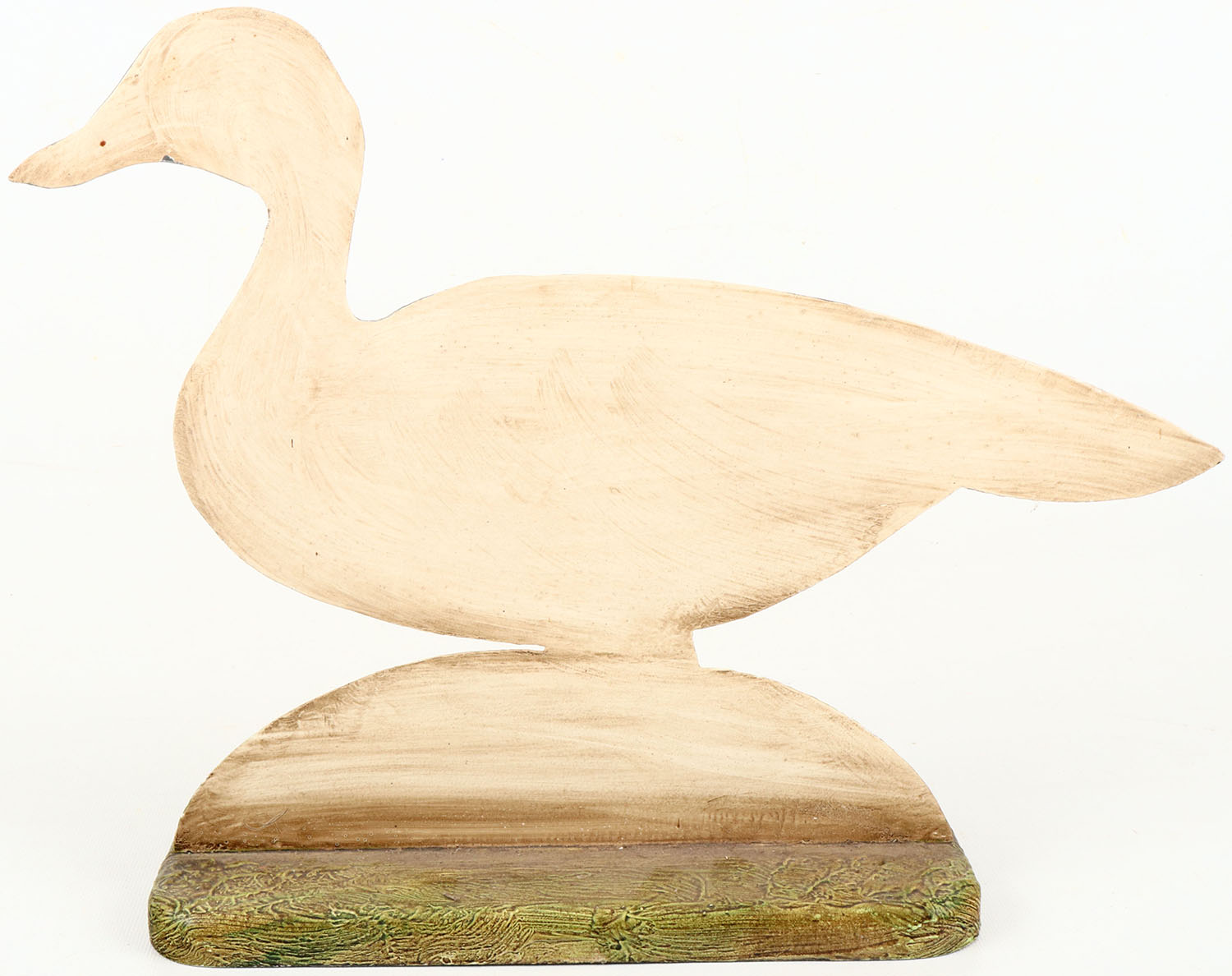Goldeneye Drake by unknown maker, metal silhouette on wood bottom board, painted eyes, wonderful original paint on one side. Grade: Excellent - Value: 10 to 50