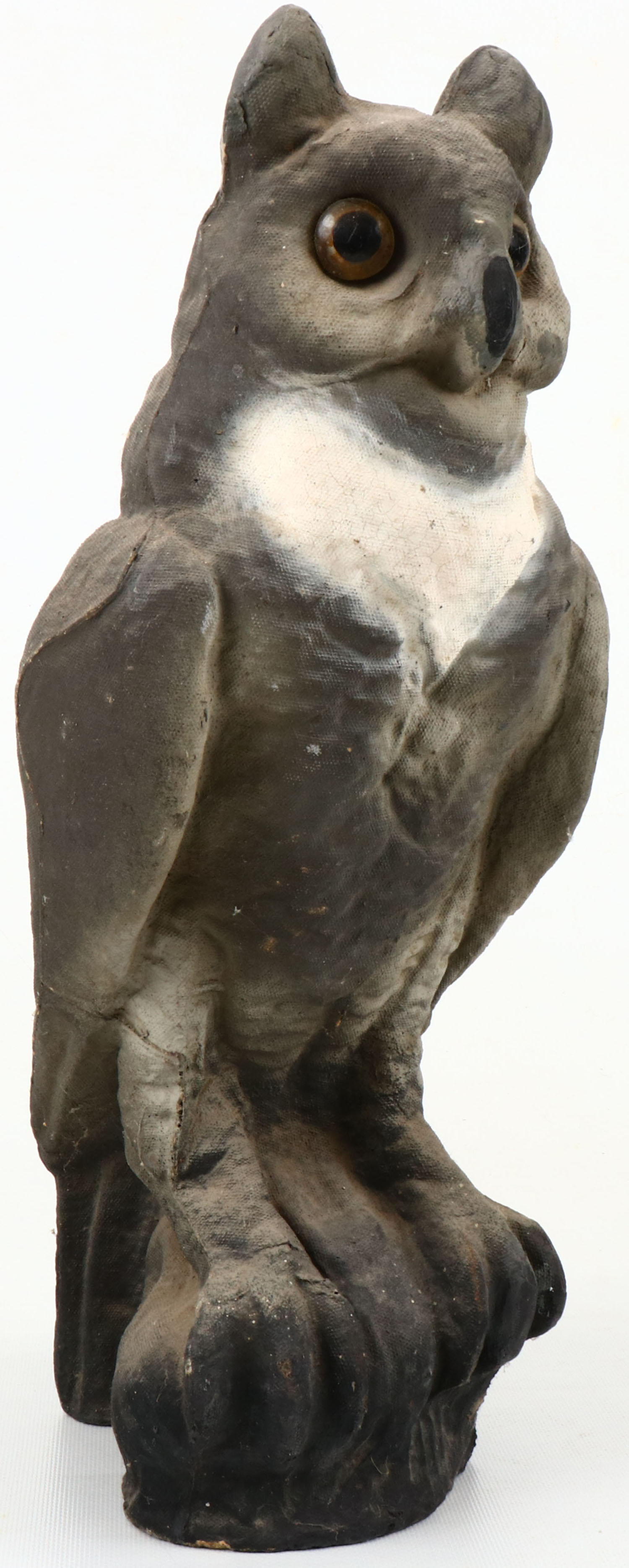Owl Decoy by unknown maker, glass eyes, paper mache', original paint is nice. Grade: Excellent - Value: 6 to 30