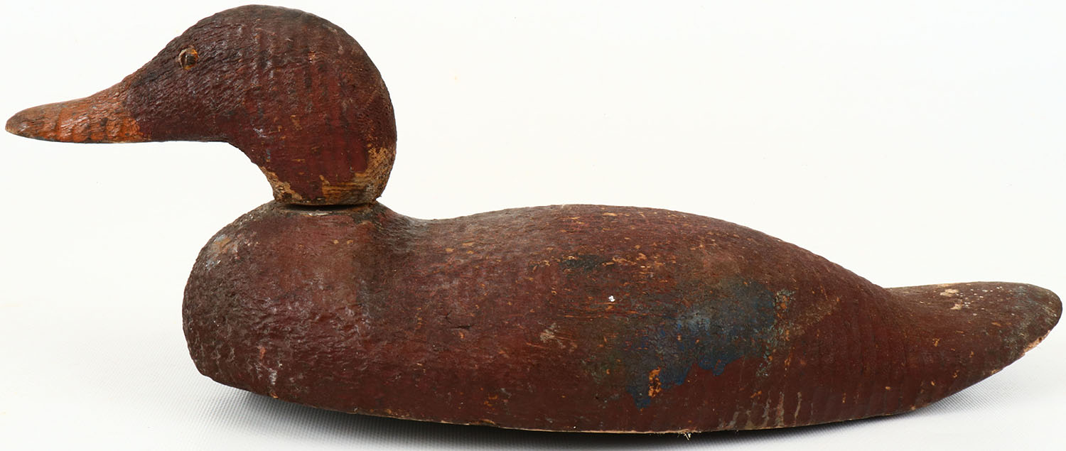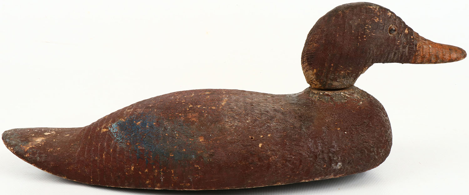 Mallard Hen by unknown maker, glass eyes, one eye is cracked, solid wood, head is loose, possible repaint. Grade: Very Good ++ - Value: 20 to 60