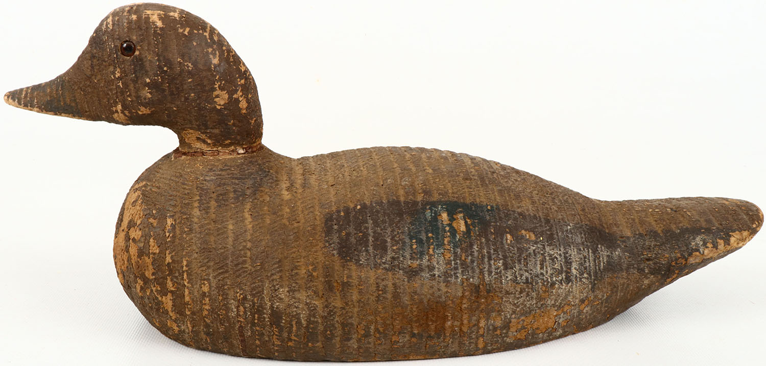 Mallard Hen by PADCO, glass eyes, solid wood, original paint with typical wear. Grade: Very Good + - Value: 20 to 50