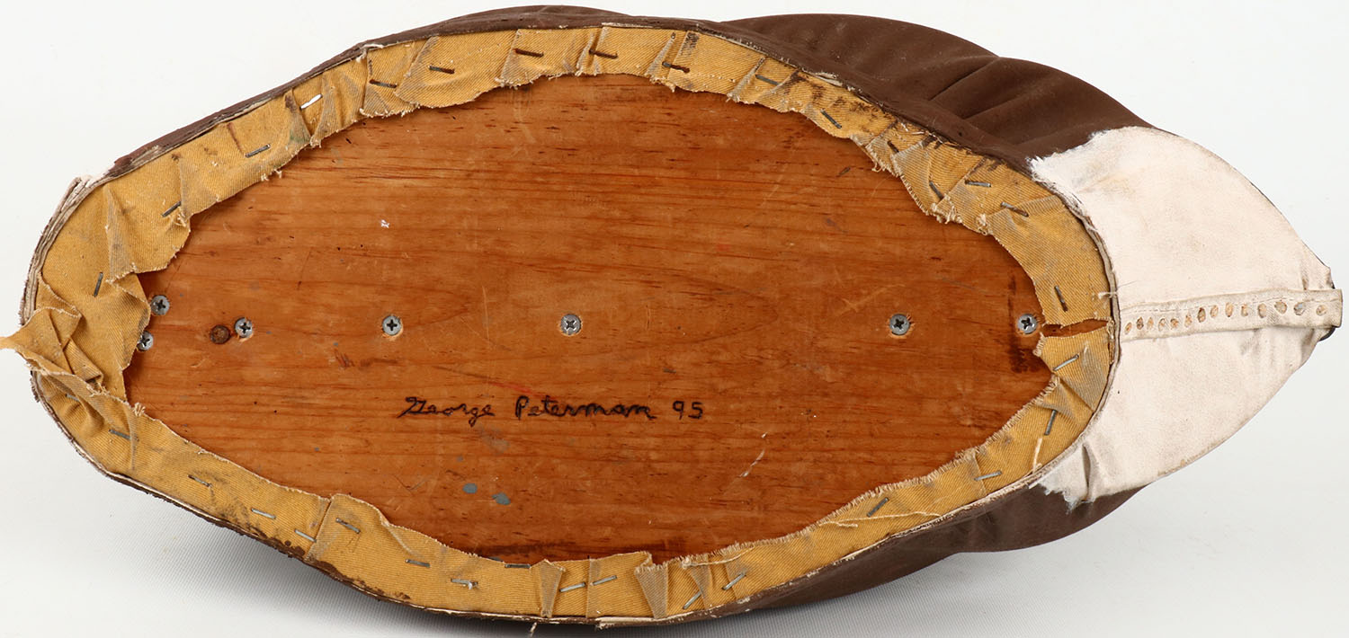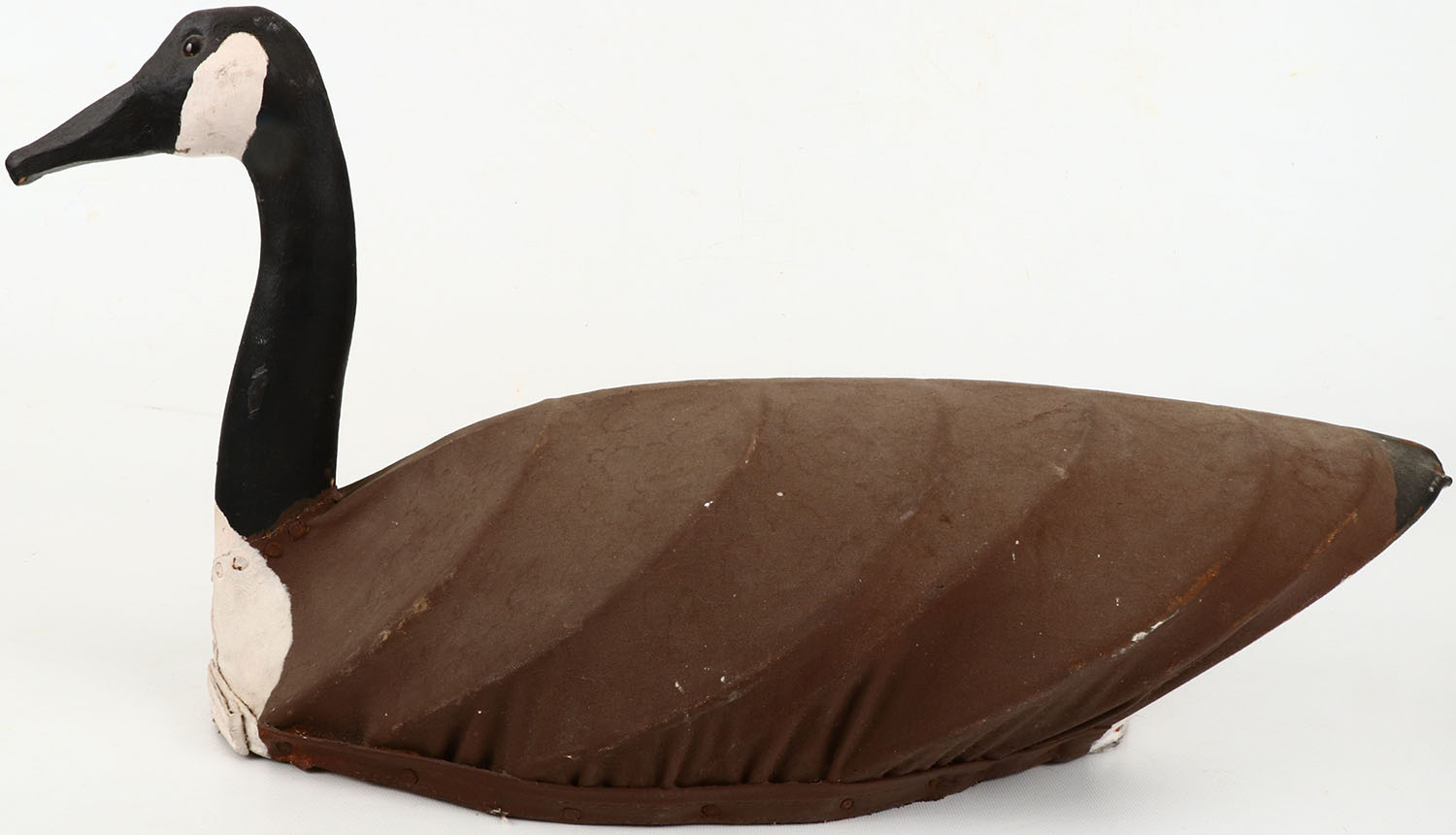 Canada Goose by George Peterman, glass eyes, structurally excellent, wood head, canvas over wire body, excellent original paint, signed on bottom. Grade: Excellent + - Value: 30 to 60