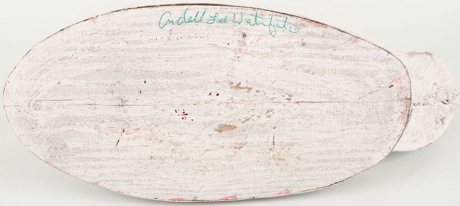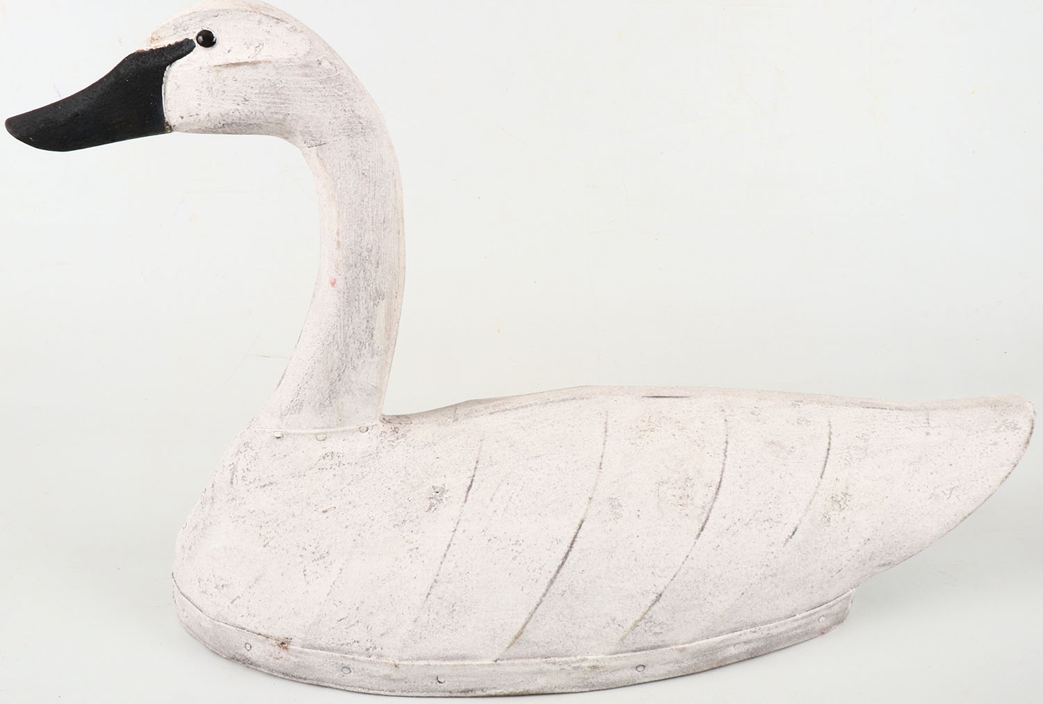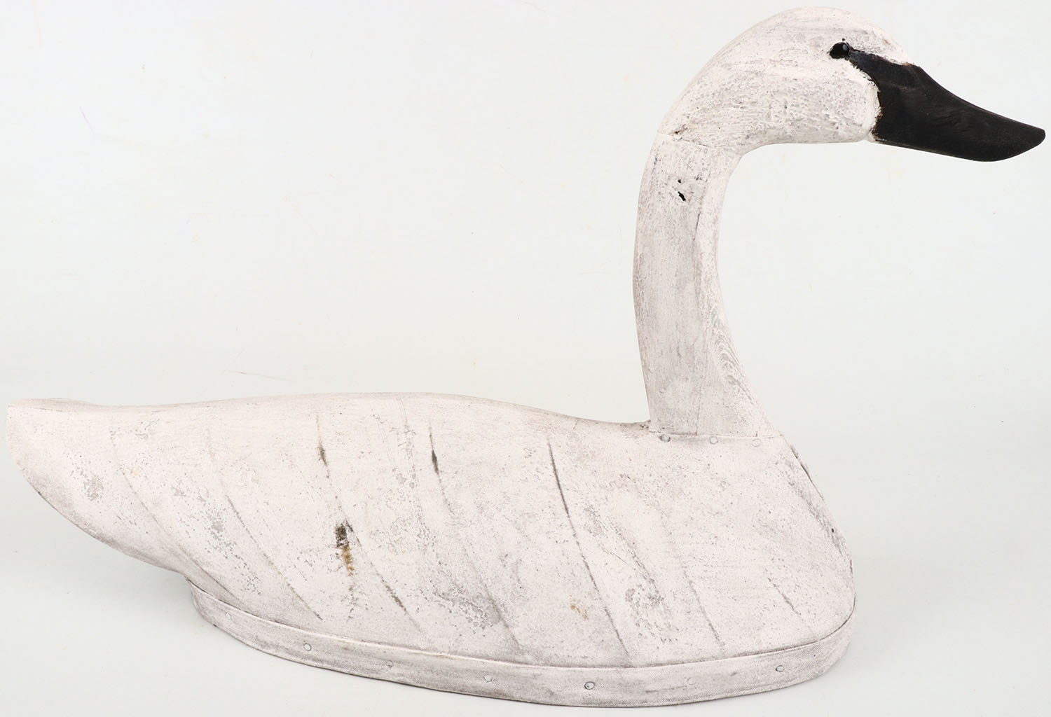 Tundra Swan by unknown maker, glass eyes, structurally excellent, wood head, canvas over wire body, excellent original paint, signed on bottom. Grade: Excellent + - Value: 20 to 60
