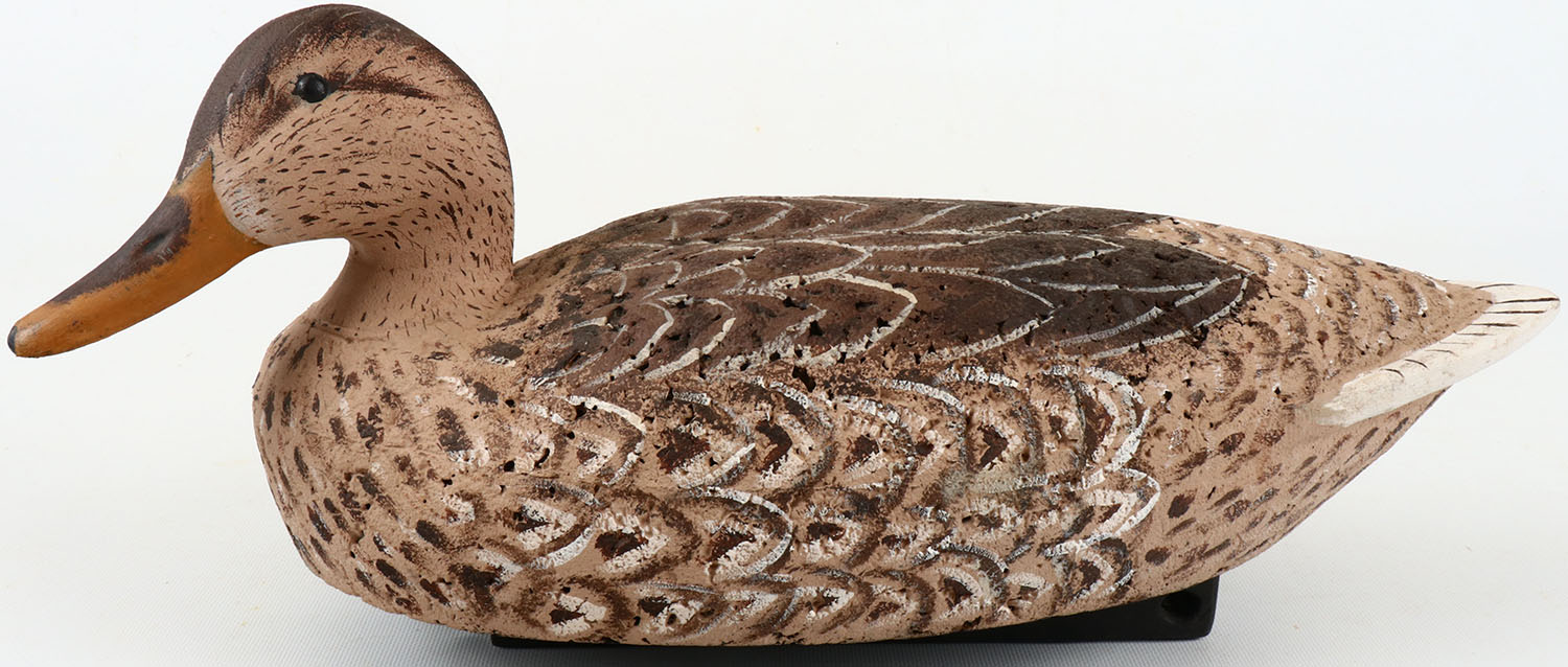 Mallard Hen by unknown, TE, solid cork body, mint original paint, structurally excellent. Grade: Excellent ++ - Value: 30 to 60