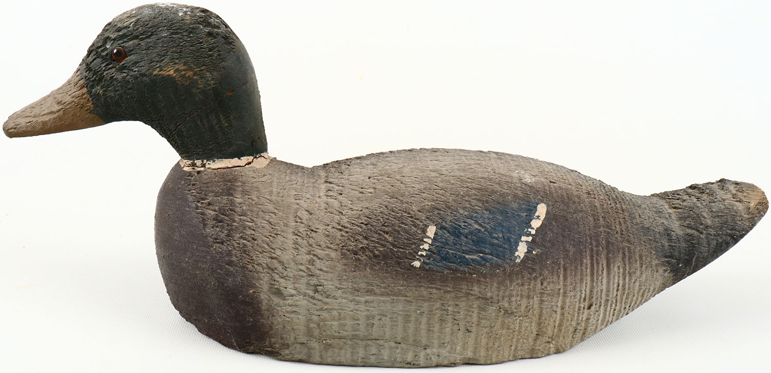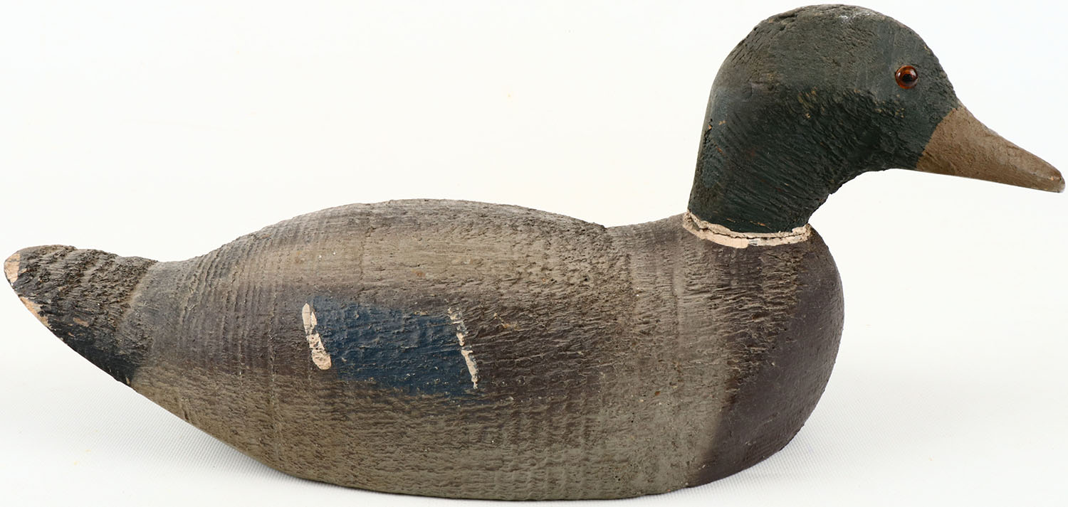 Mallard Drake by Animal Trap Co. Pascagoula Miss an so stamped on bottom of tail, GE, solid wood, original paint, structurally excellent. Grade: Excellent - Value: 20 to 60