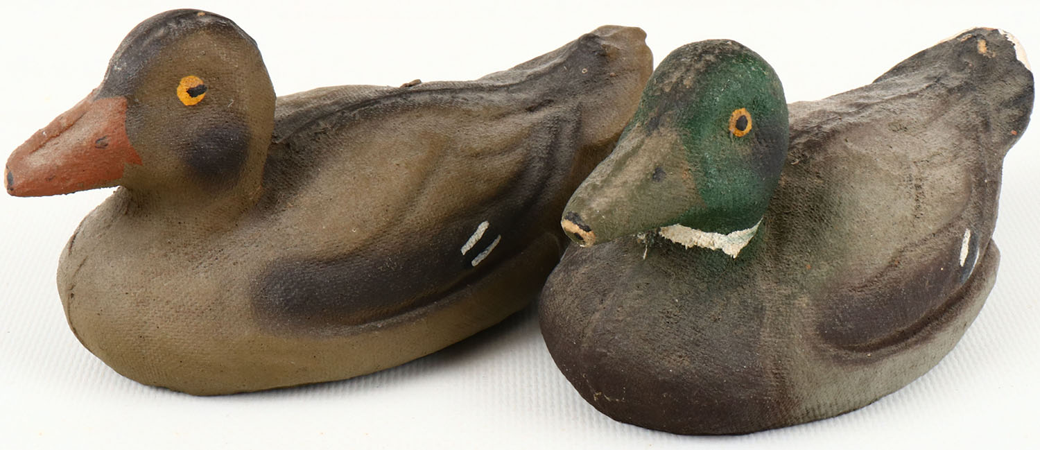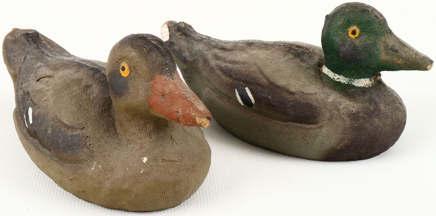 SALESMAN SAMPLE Pair of Mallards by Carry-Lite Decoys, Milwaukee, Wis., unmarked, PE, paper mache', original paint shows light wear. Grade: Excellent - Value: 20 to 50