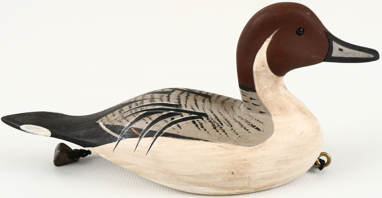 Miniature Pintail Drake by Joseph B. LE., glass eyes, structurally excellent, solid wood, excellent original paint, branded JBL on bottom. Grade: MINT - Value: 10 to 30