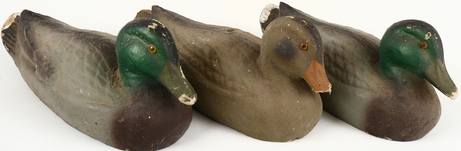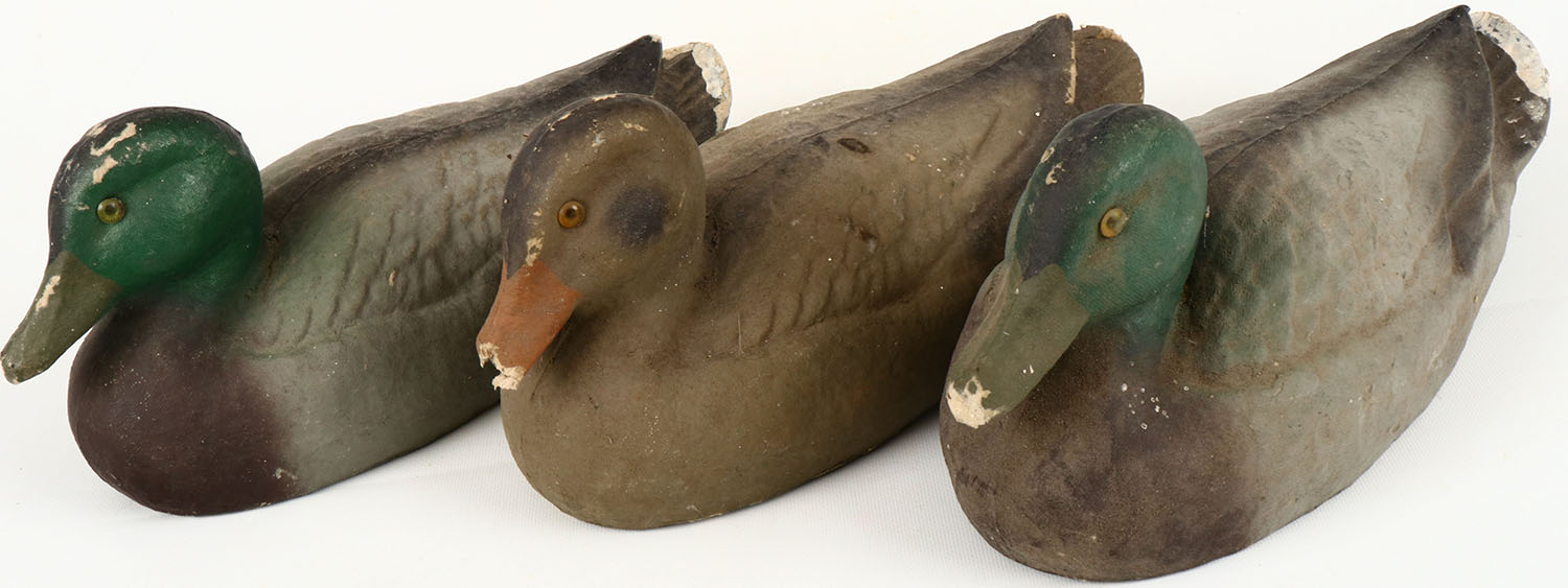 Lot of 3 paper mache' Decoys, (2) Mallard Drakes and (1) Mallard Hen by Carry Lite Decoys. Grade: Very Good - Value: 2 to 30