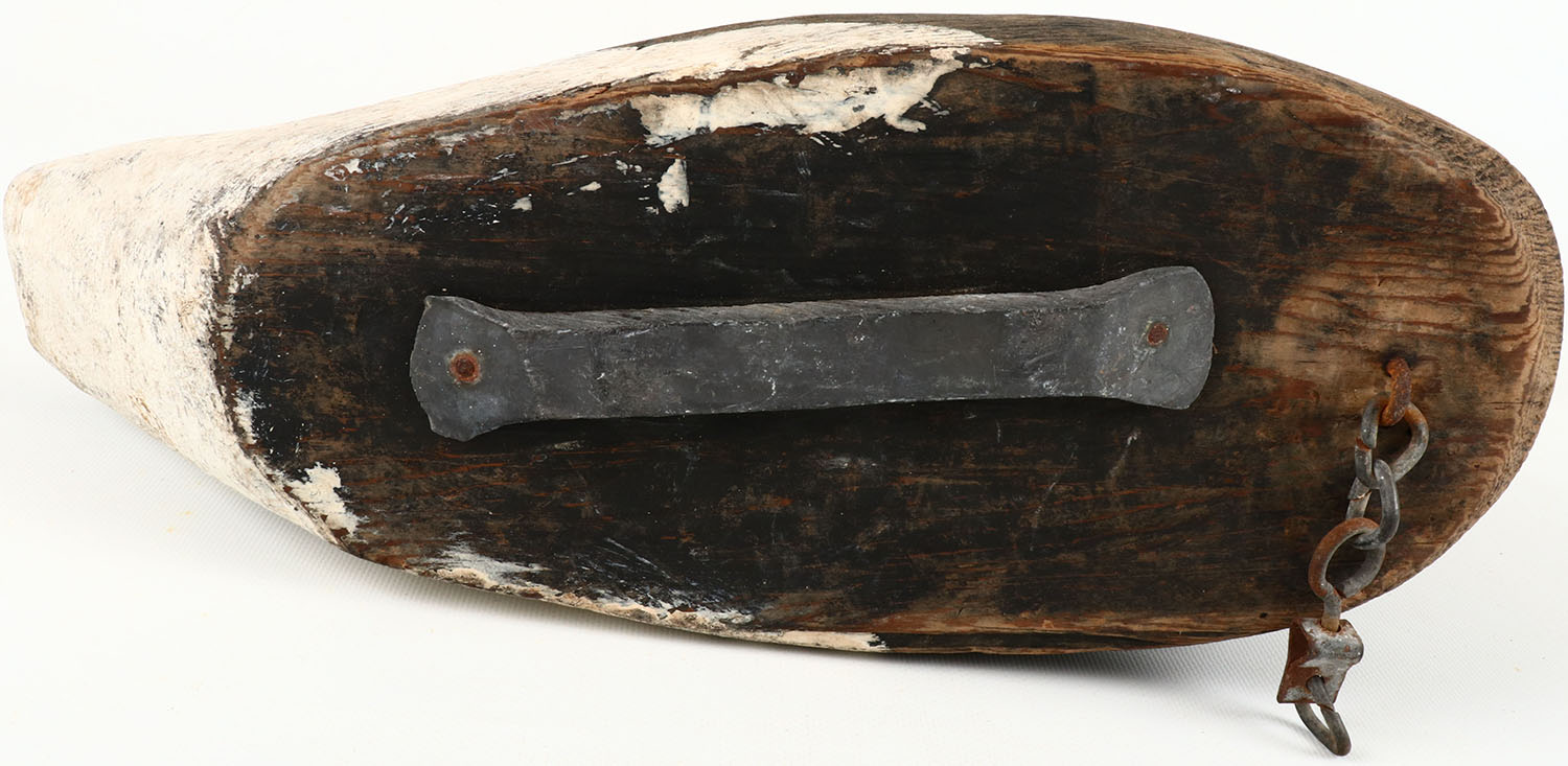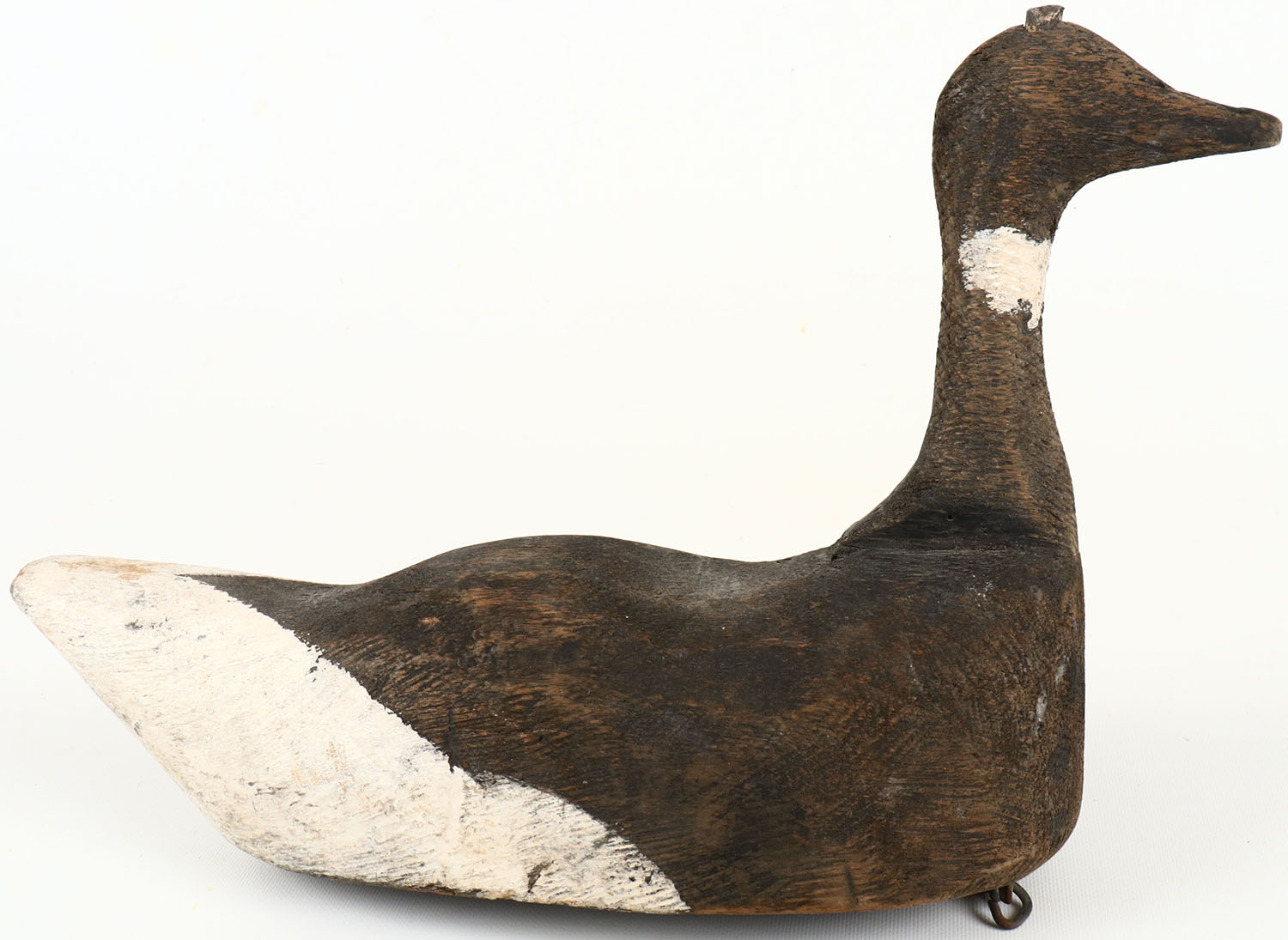 Brant from Samish Island/Skagit Valley, WA, a rig of these were brought to the WA Brant Foundation Show at the Farmhouse Inn around 2010 and sold off the back of a tailgate, no eyes, solid wood, original paint with typical wear. Grade: Very Good ++ - Value: 50 to 100