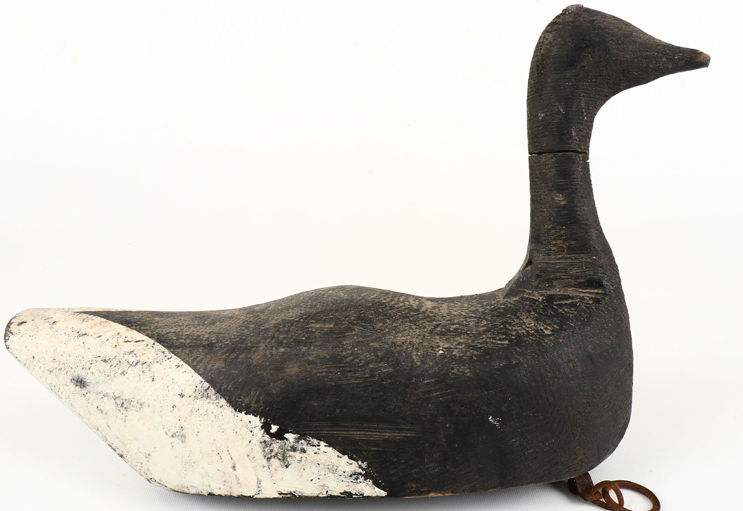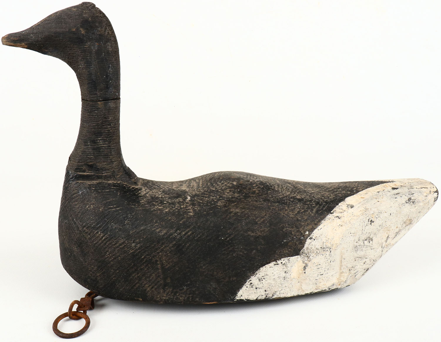 Brant from Samish Island/Skagit Valley, WA, a rig of these were brought to the WA Brant Foundation Show at the Farmhouse Inn around 2010 and sold off the back of a tailgate, no eyes, solid wood, original paint with typical wear. Grade: Very Good ++ - Value: 50 to 100