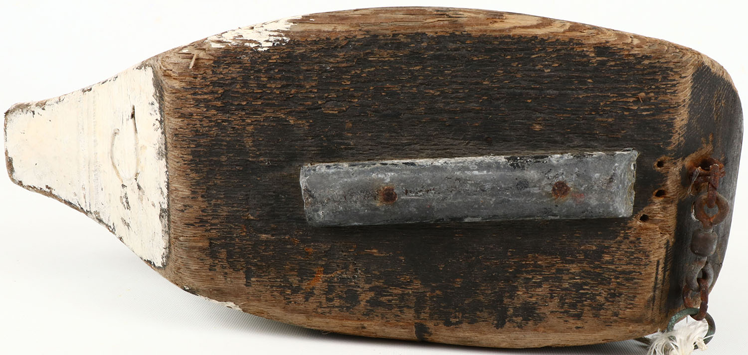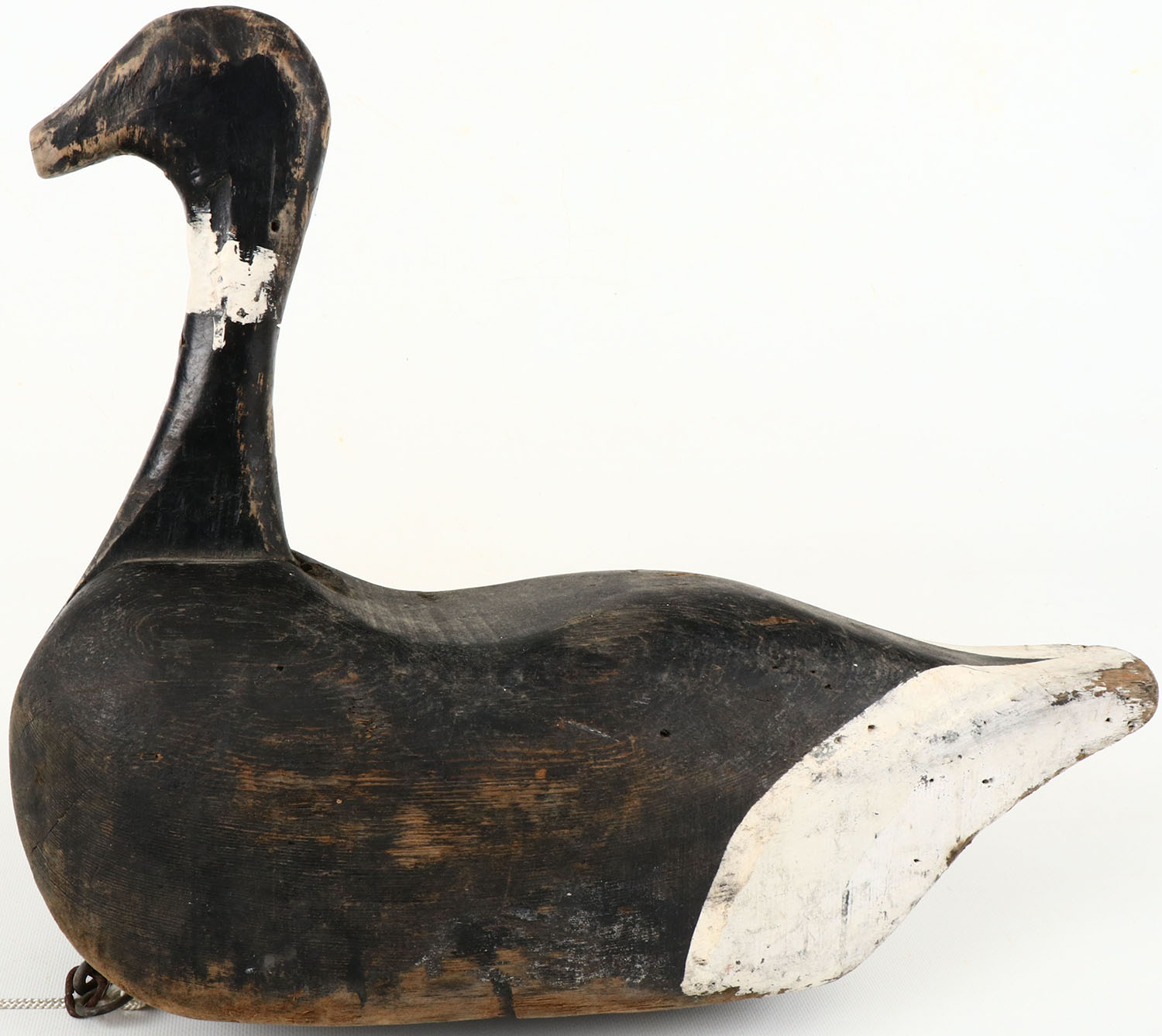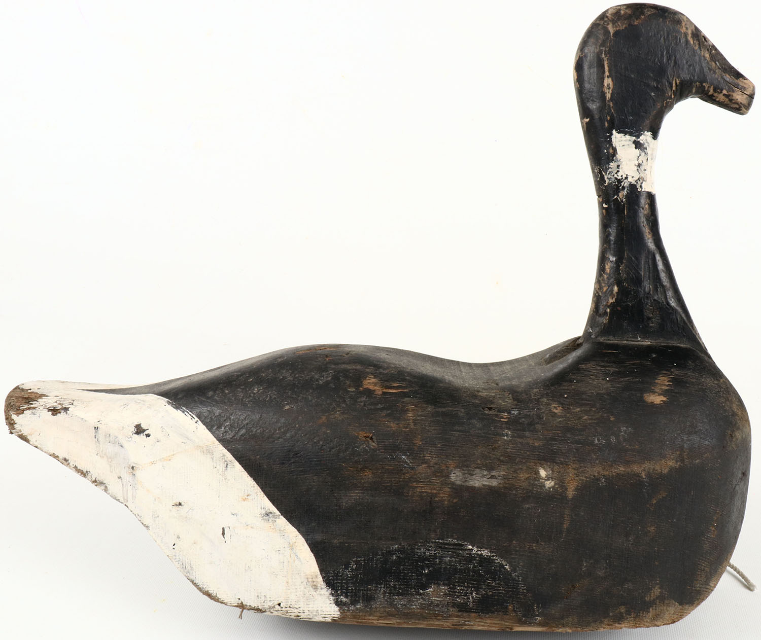 Brant by unknown maker, found in Skagit Valley, no eyes, solid wood, original paint with typical wear. Grade: Very Good + - Value: 30 to 60