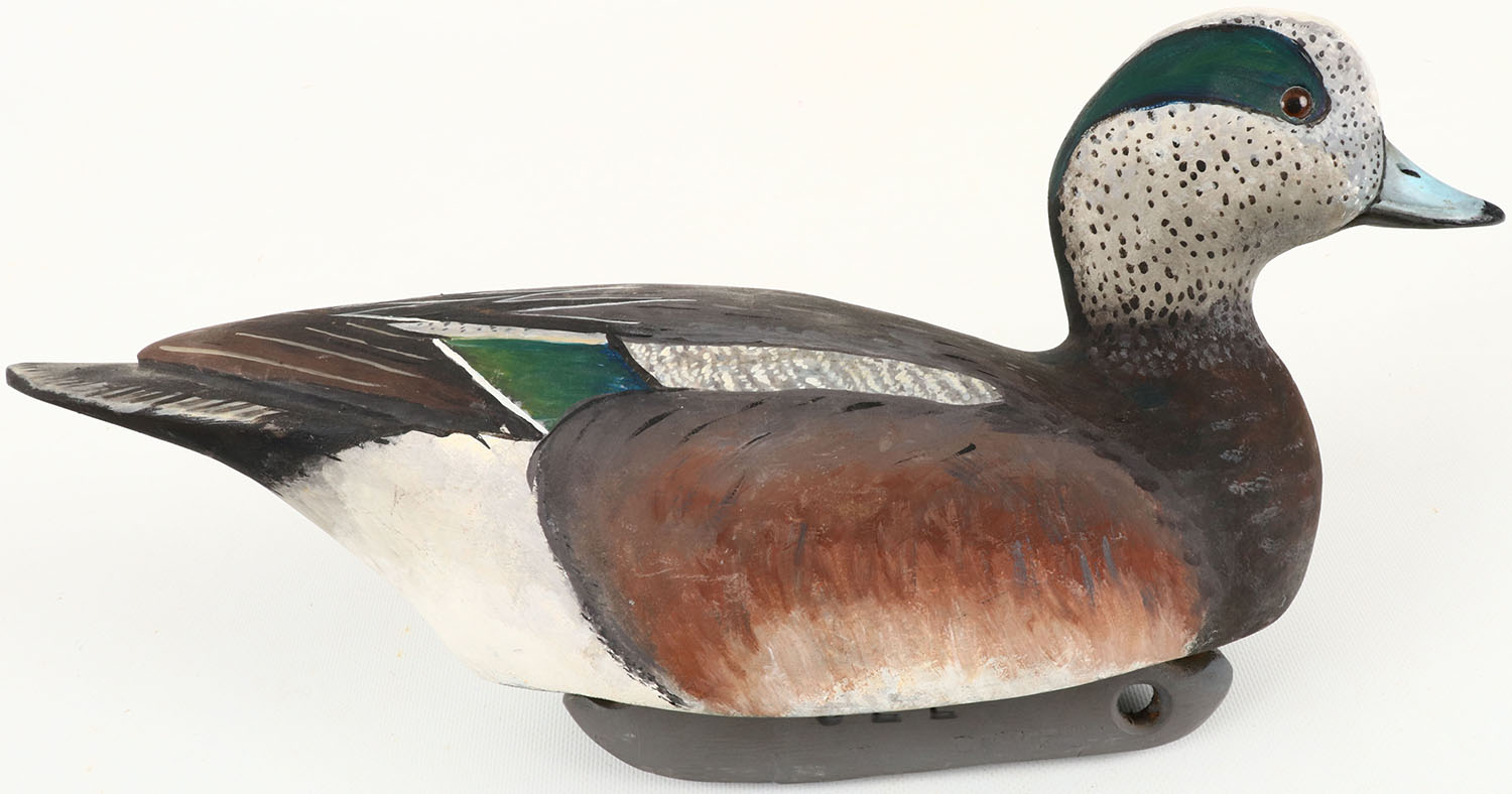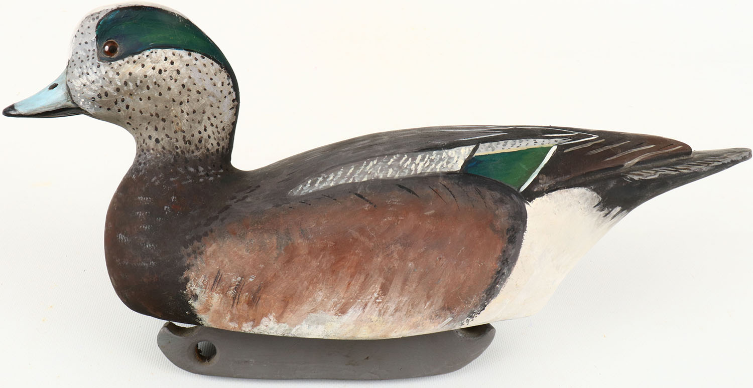 Wigeon Drake by Jack Leach, Tacoma, WA., glass eyes, structurally excellent, hollow wood, excellent original paint. Grade: MINT - Value: 100 to 200
