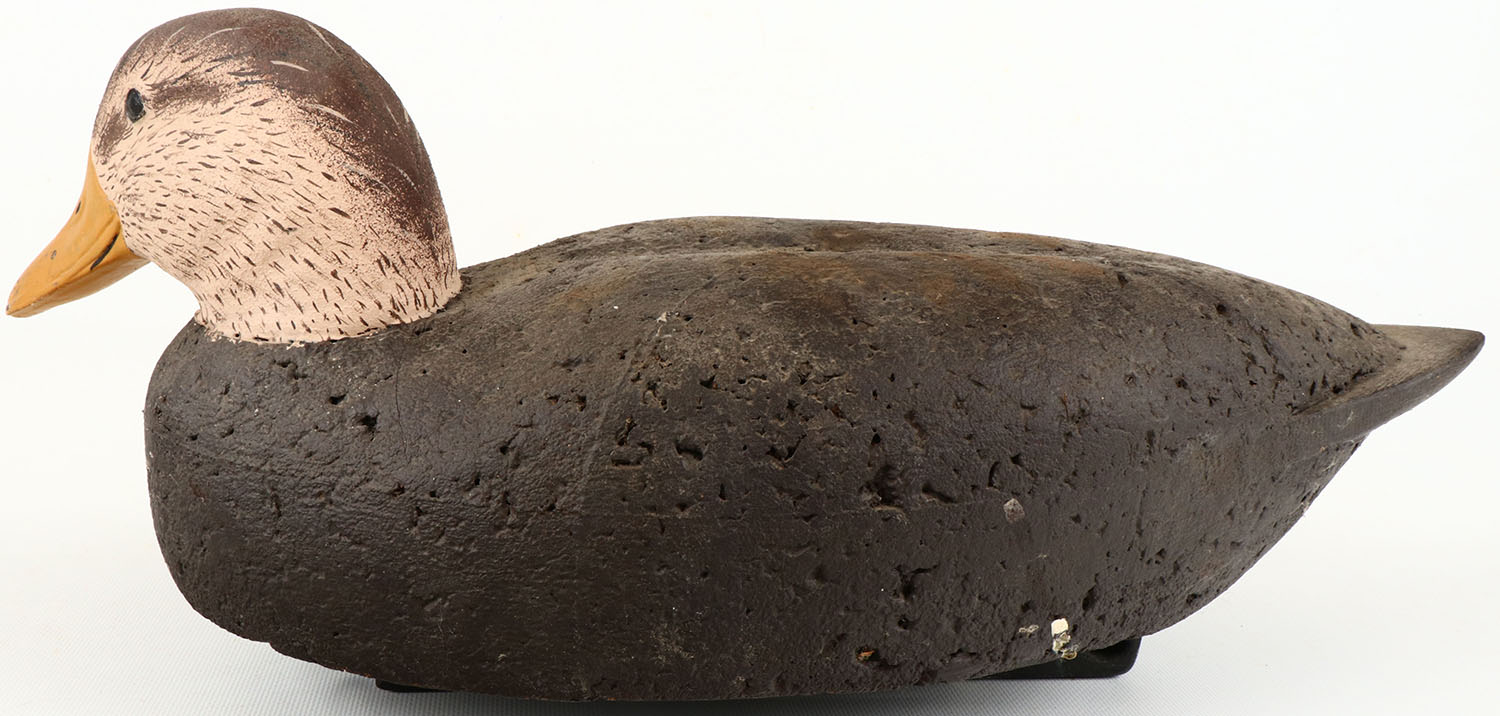 Black Duck by unknown maker, TE, solid cork body, mint original paint, structurally excellent. Grade: Excellent ++ - Value: 30 to 60