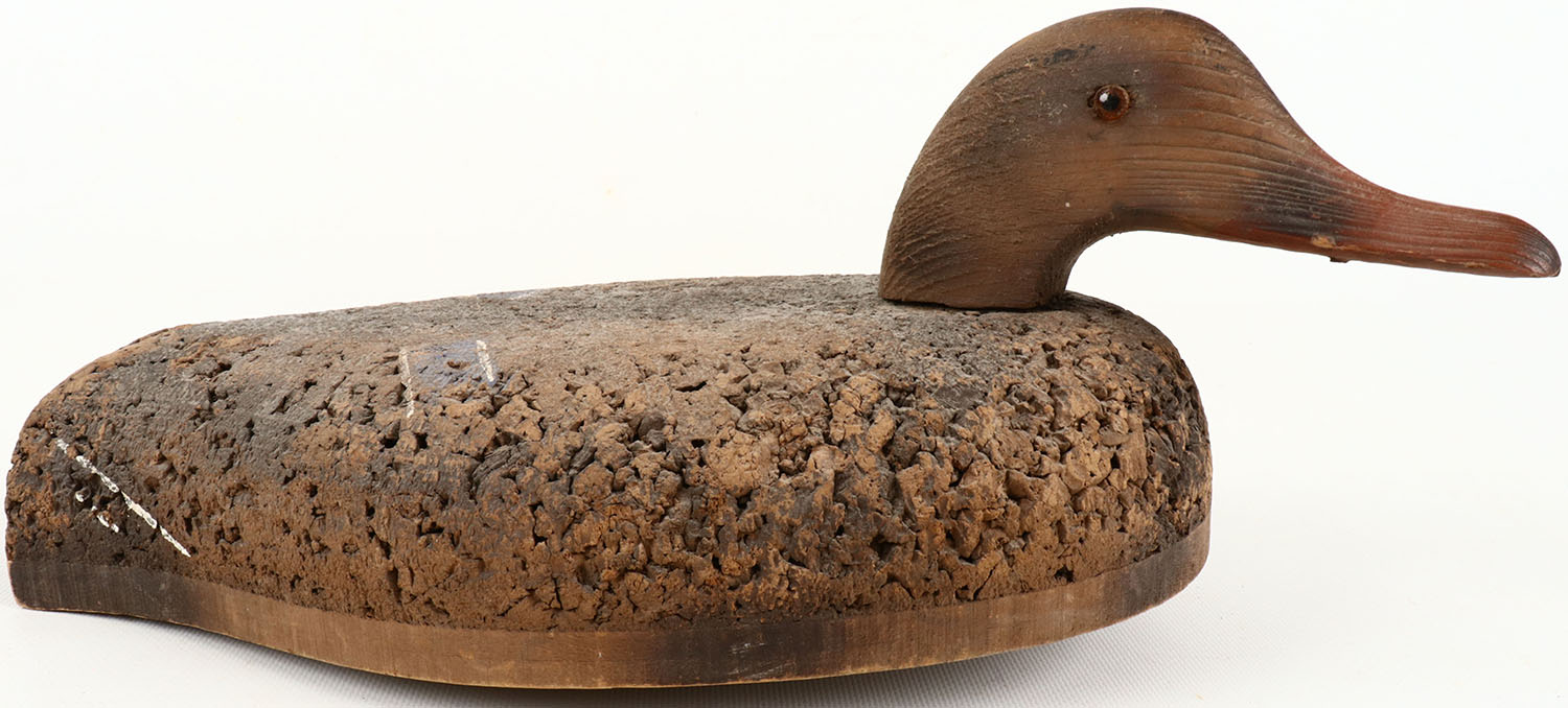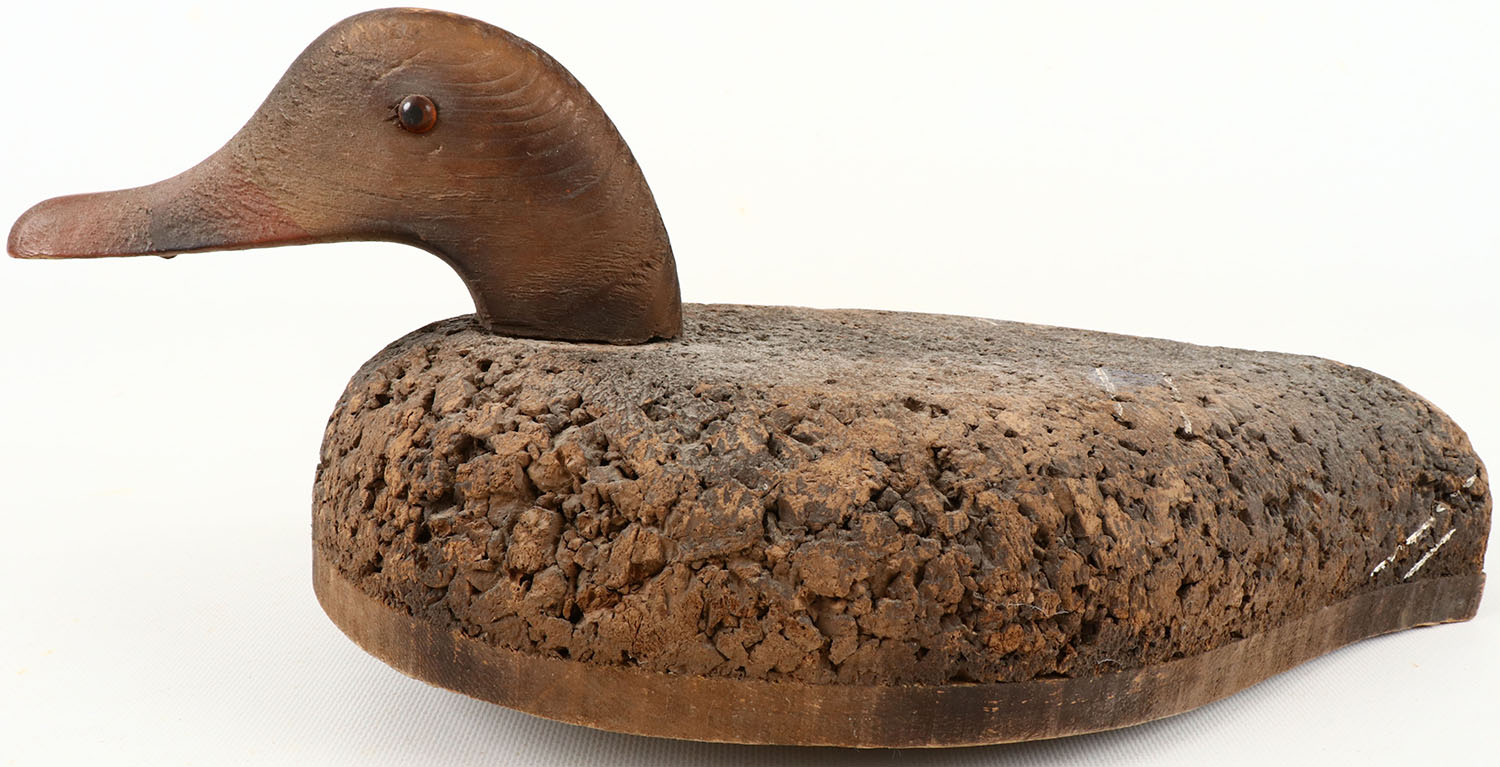 Mallard Hen by unknown, GE, solid cork body with wood bottom board, original paint, structurally excellent. Grade: Excellent - Value: 10 to 30