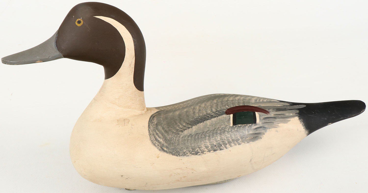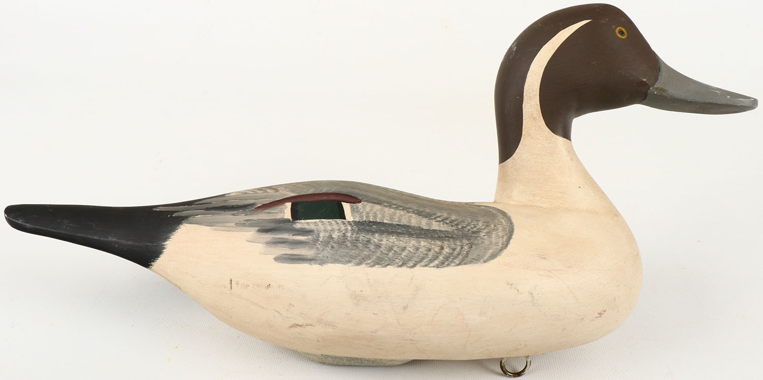 Pintail Drake by unknown carver, from Maryland, solid wood, painted eyes, original paint, structurally excellent. Grade: Excellent + - Value: 30 to 60