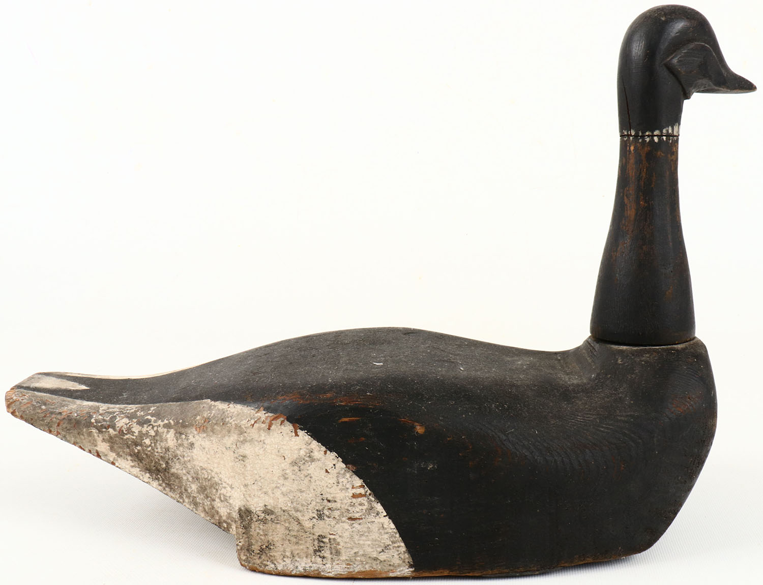 Black Brant appears to be Delta, BC, no eyes, solid wood, nice original paint with some edge wear, head is removable on wood dowel, structurally excellent. Grade: Excellent - Value: 50 to 100