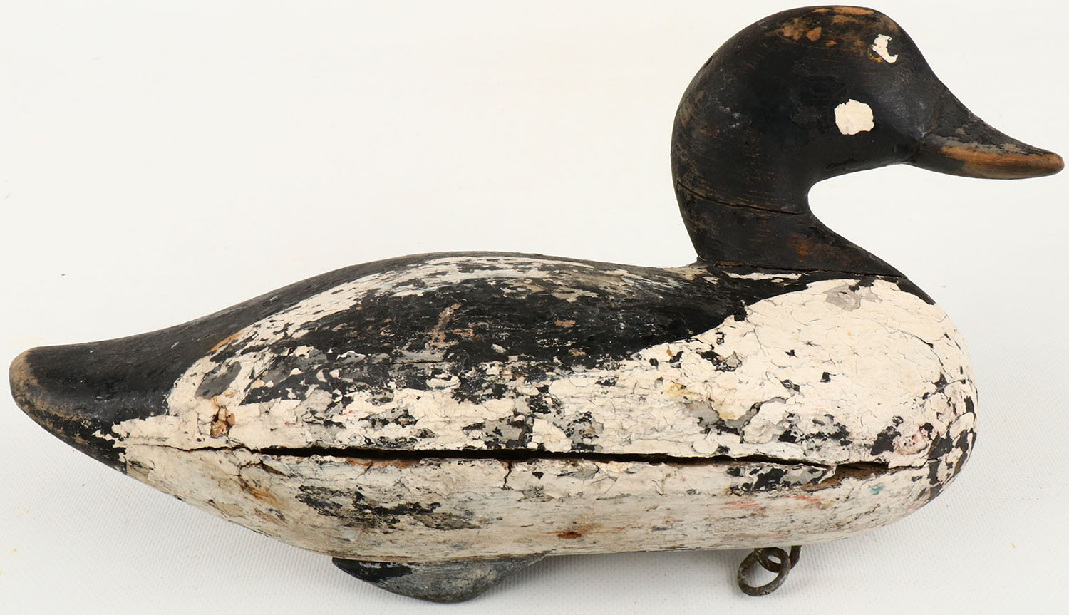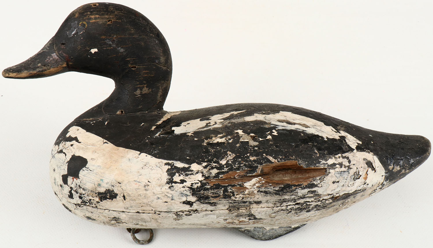 Bluebill Drake by unknown, PE, solid wood, old repaint, shows a few age cracks. Grade: Very Good - Value: 20 to 50
