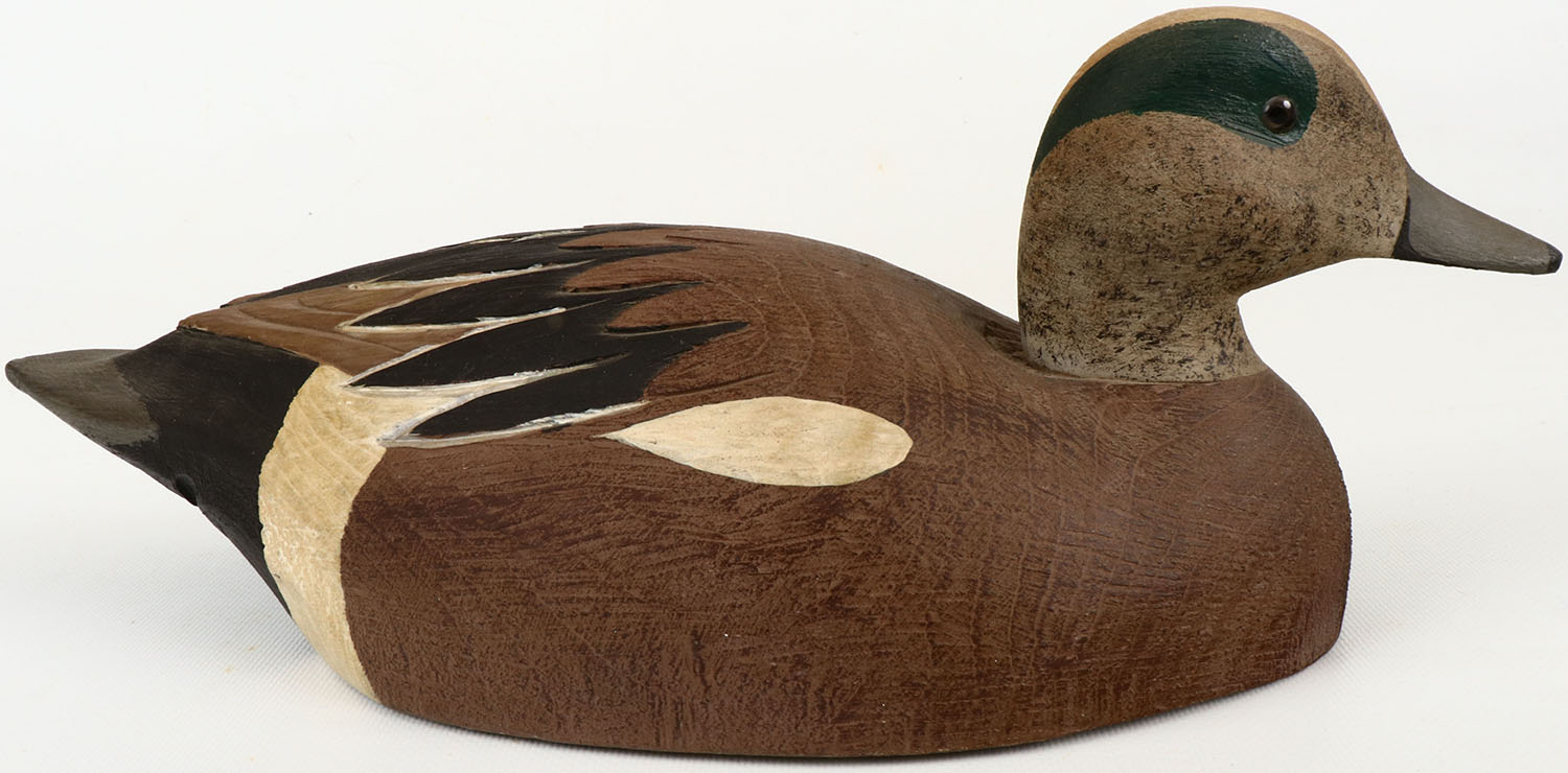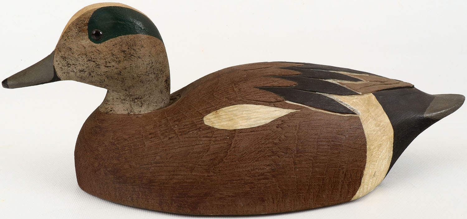 Wigeon Drake by Doug Snow, Royal Oak, MI, (son of Walter Snow), GE, hollow wood, original paint, stamped on bottom. Grade: Excellent + - Value: 100 to 200