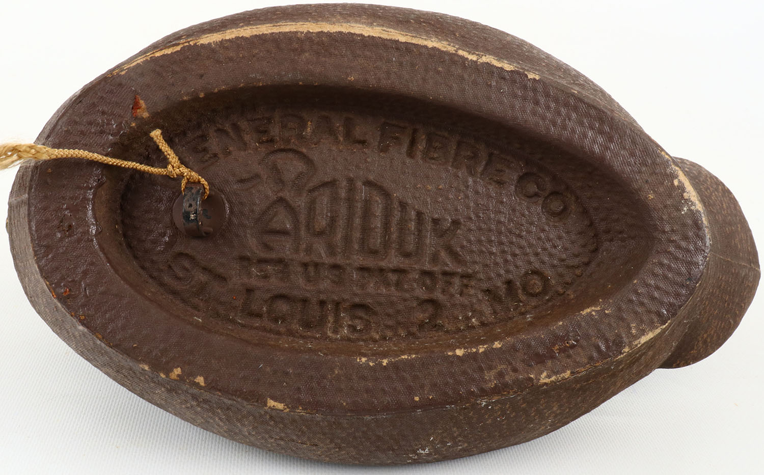 Mallard Hen by General Fabreco, Ariduk ST. Louis., glass eyes, paper mache, has repair to head, original paint. Grade: Very Good - Value: 2 to 10