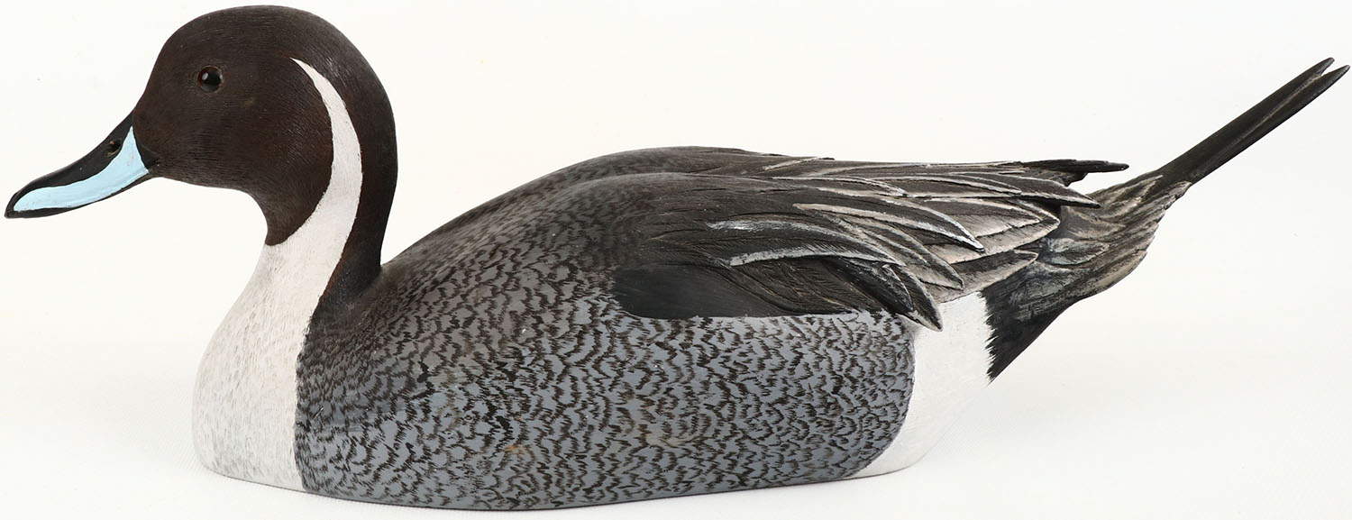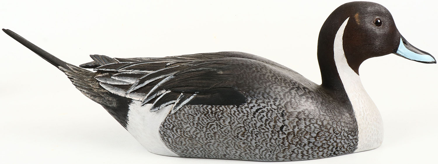 Pintail Drake by Donald Wlandwehr, glass eyes, solid wood, structurally excellent, mint original paint with excellent feather detail. Grade: MINT - Value: 50 to 100