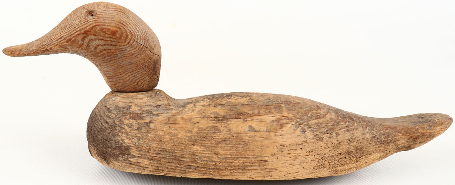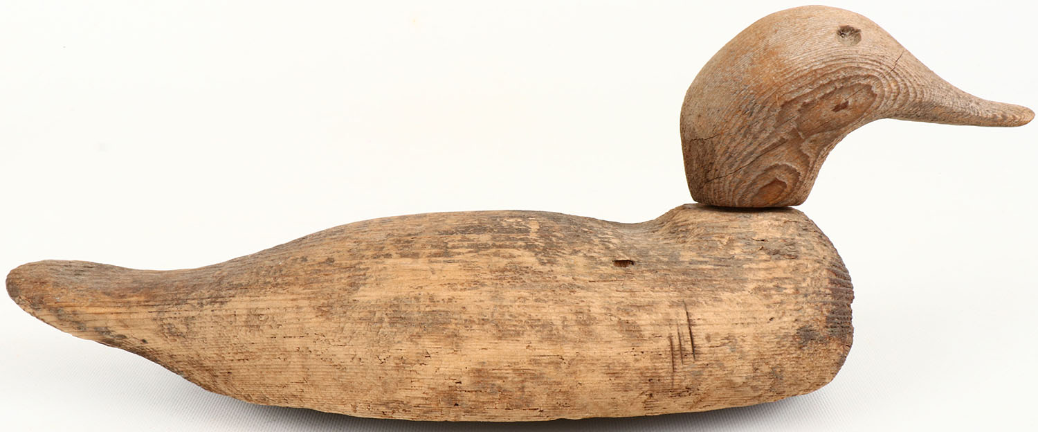 Pintail Hen by Victor, glass eyes missing, paint is worn thin, solid wood, head is loose. Grade: Good ++ - Value: 10 to 30