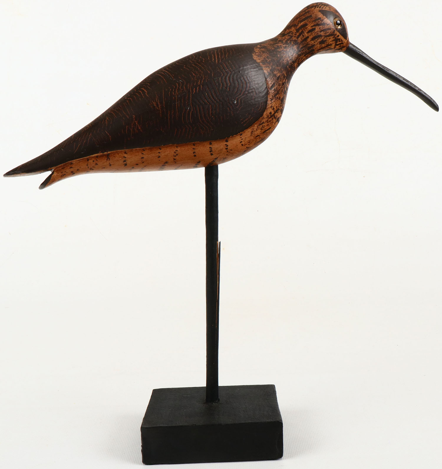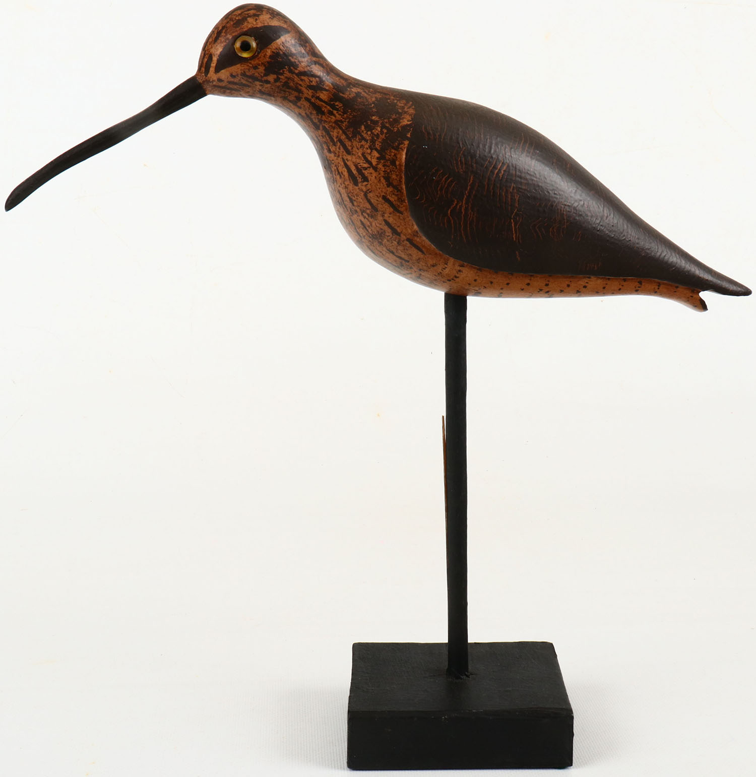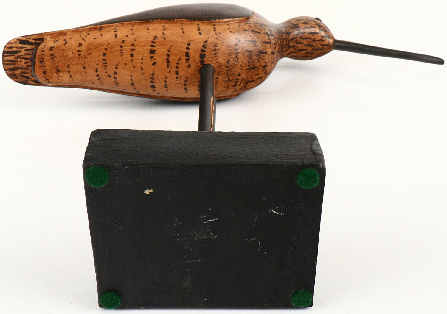 Shorebird Decoy by Girardeau Mo., by WM Heaorick, glass eyes, solid wood, on wood stand, original paint. Grade: Excellent - Value: 30 to 60