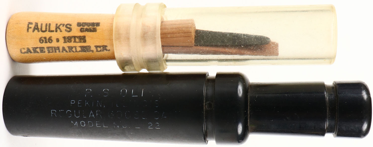 Lot of 2 Goose Calls, P.S. Olt L-22 & Faulks. Grade: Very Good ++ - Value: 10 to 50