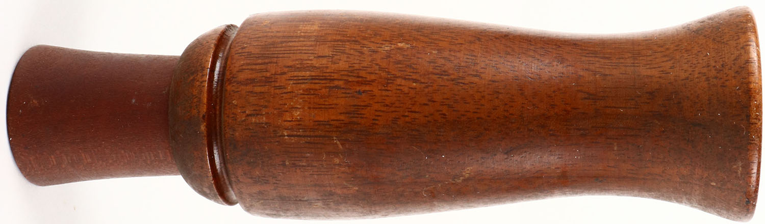 Lohman Goose Call, Kansas City MO. Marked on stopper, has small hole, has adj metal toner at reed tip. Grade: Excellent - Value: 10 to 50