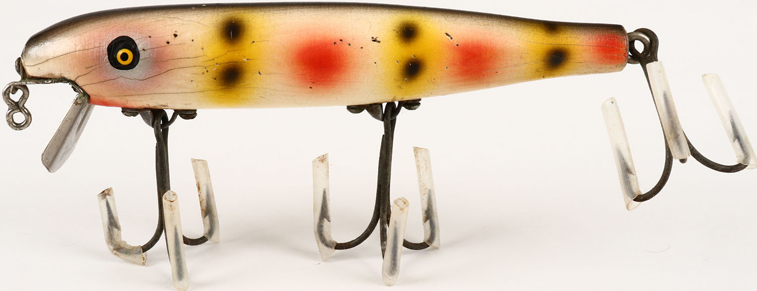 Pflueger Palomine, CE, STRAWBERRY finish, has metal lip, 3 hook lure. Grade: Excellent + - Value: 20 to 60
